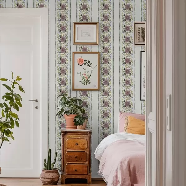 Шпалери Вертикальні квіткові смуги в бузково-блакитних тонах a00809