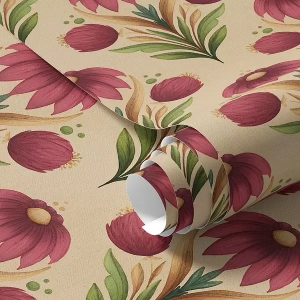 Шпалери Симетричний квітковий орнамент на теплому бежевому тлі Nr. a00812v6