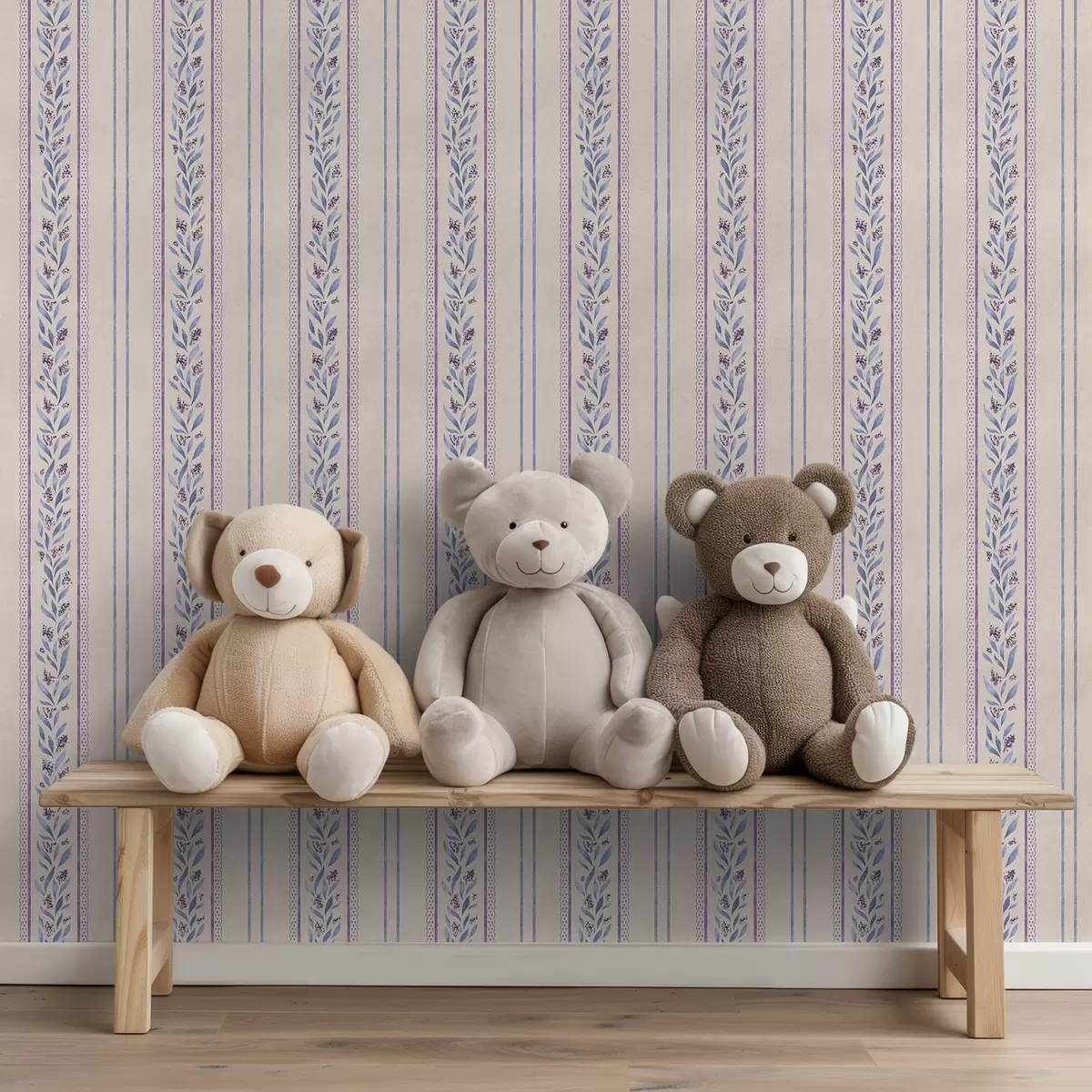 Шпалери Вертикальні смуги з лавандовими віньєтками, теплий бежевий колір Nr. a00813