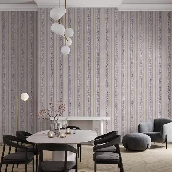 Шпалери Вертикальні смуги з лавандовими віньєтками, теплий бежевий колір Nr. a00813