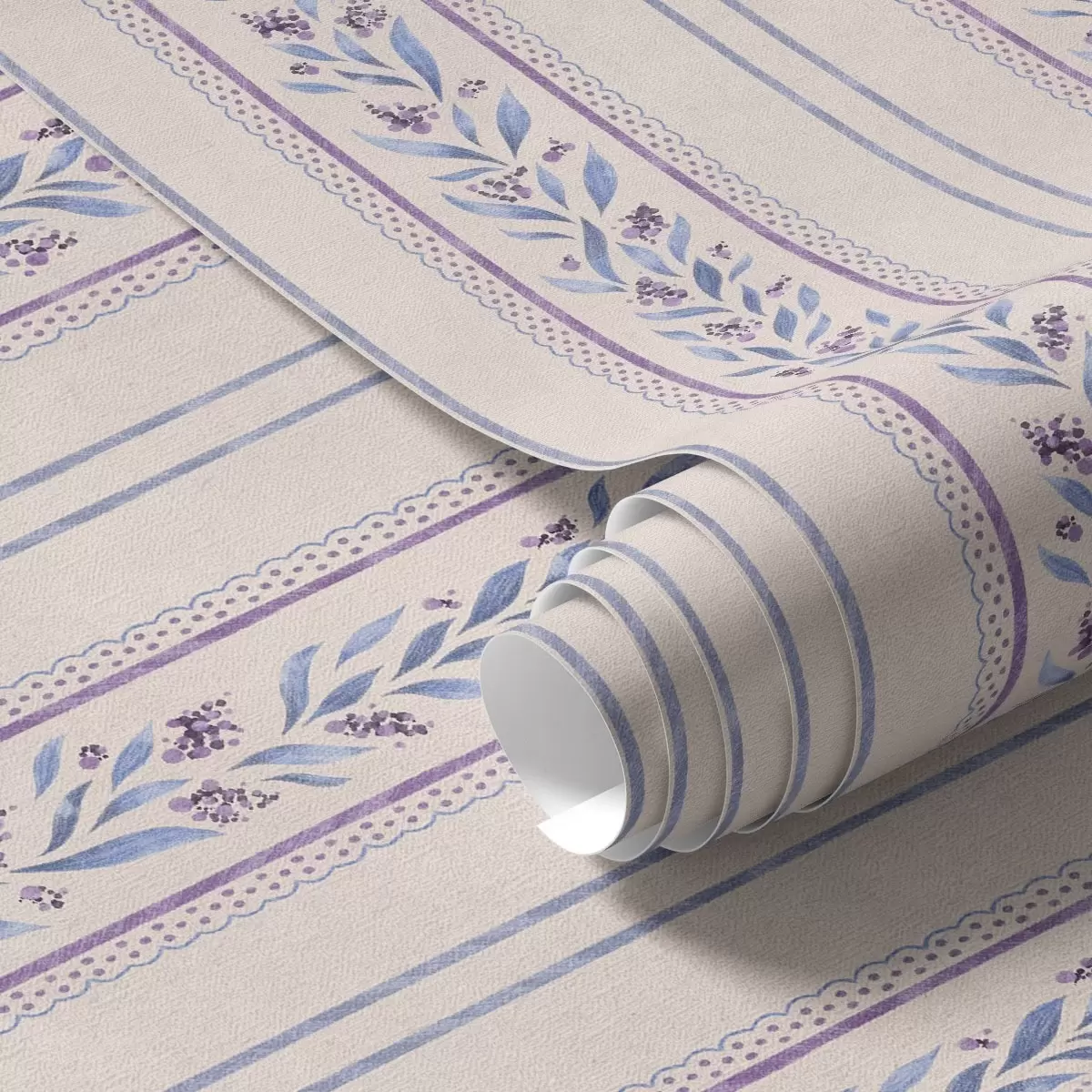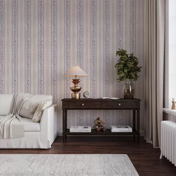 Шпалери Вертикальні смуги з лавандовими віньєтками, теплий бежевий колір Nr. a00813