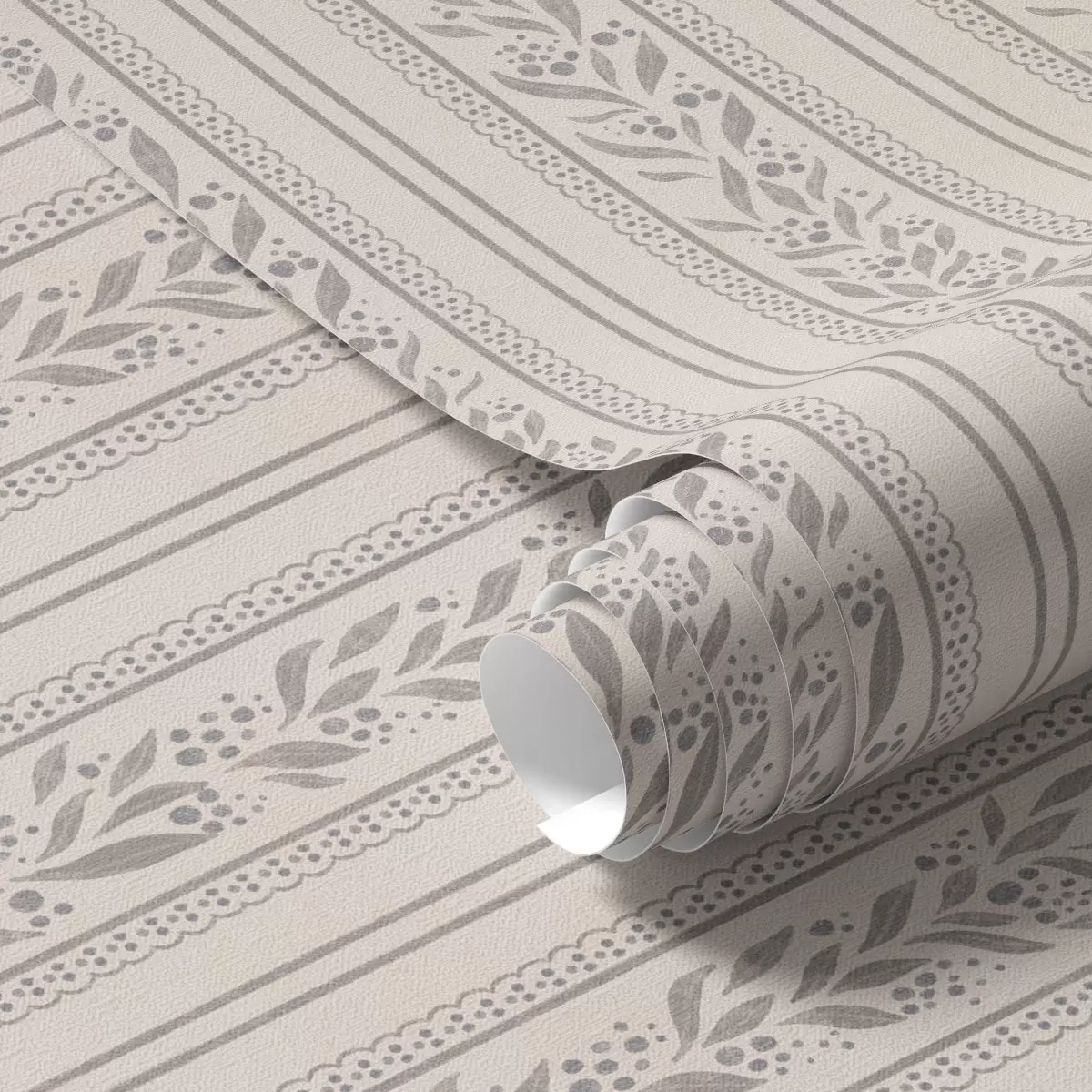 Шпалери Смужки з мереживом і сіро-бежевими гілочками Nr. a00814