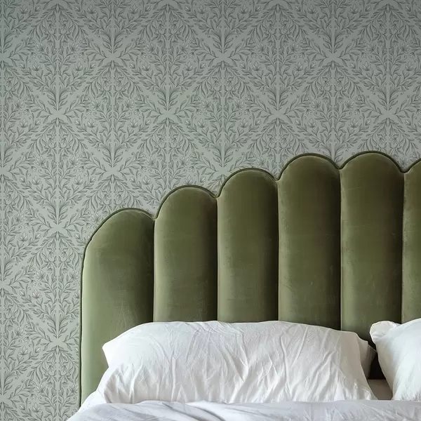 Шпалери Мереживні знімки на пастельно-зеленому тлі, ніжна глибина Nr. a00815v3