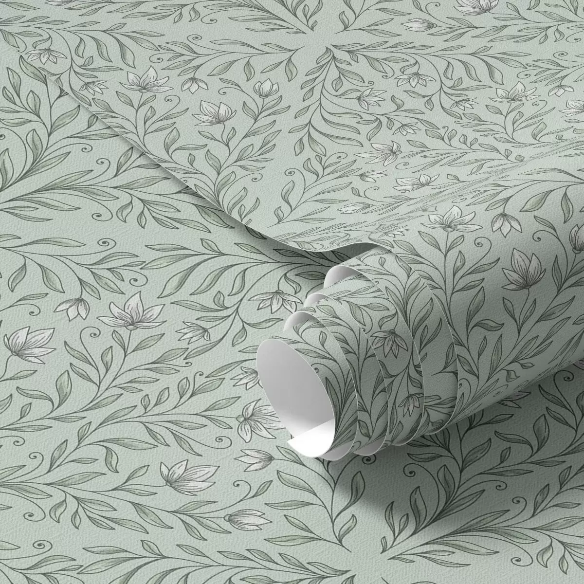Шпалери Мереживні знімки на пастельно-зеленому тлі, ніжна глибина Nr. a00815v3