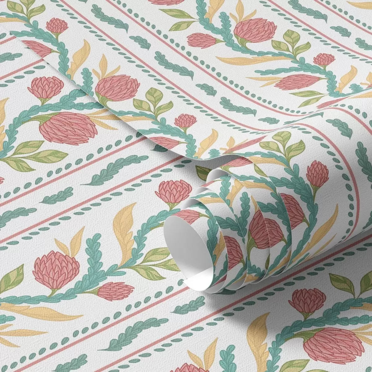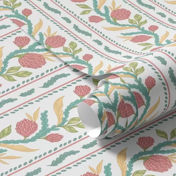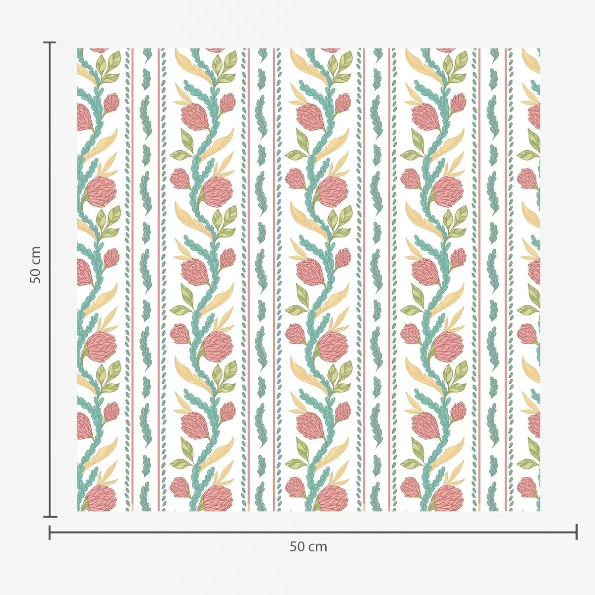 Шпалери Вертикальні смуги з кораловими квітами та бірюзовими листям Nr. a00816