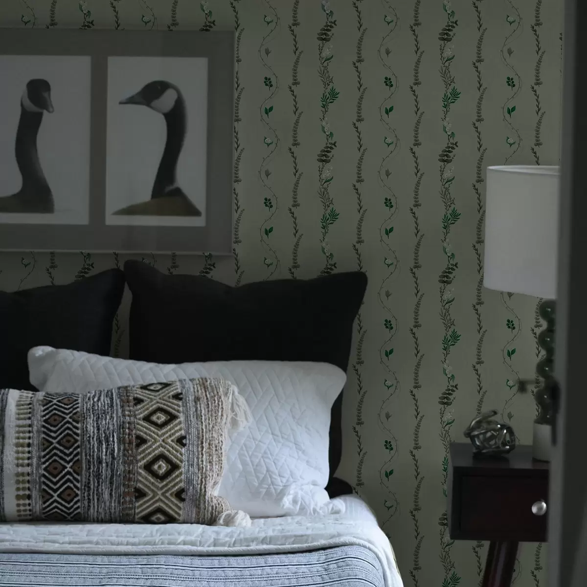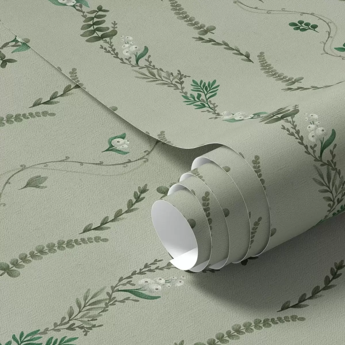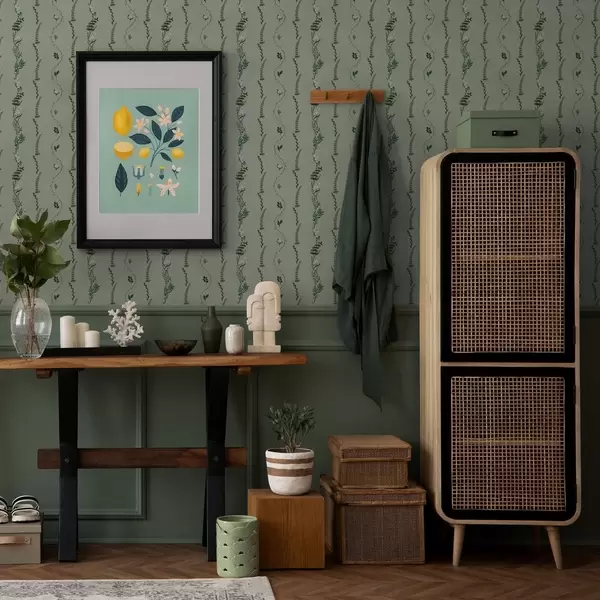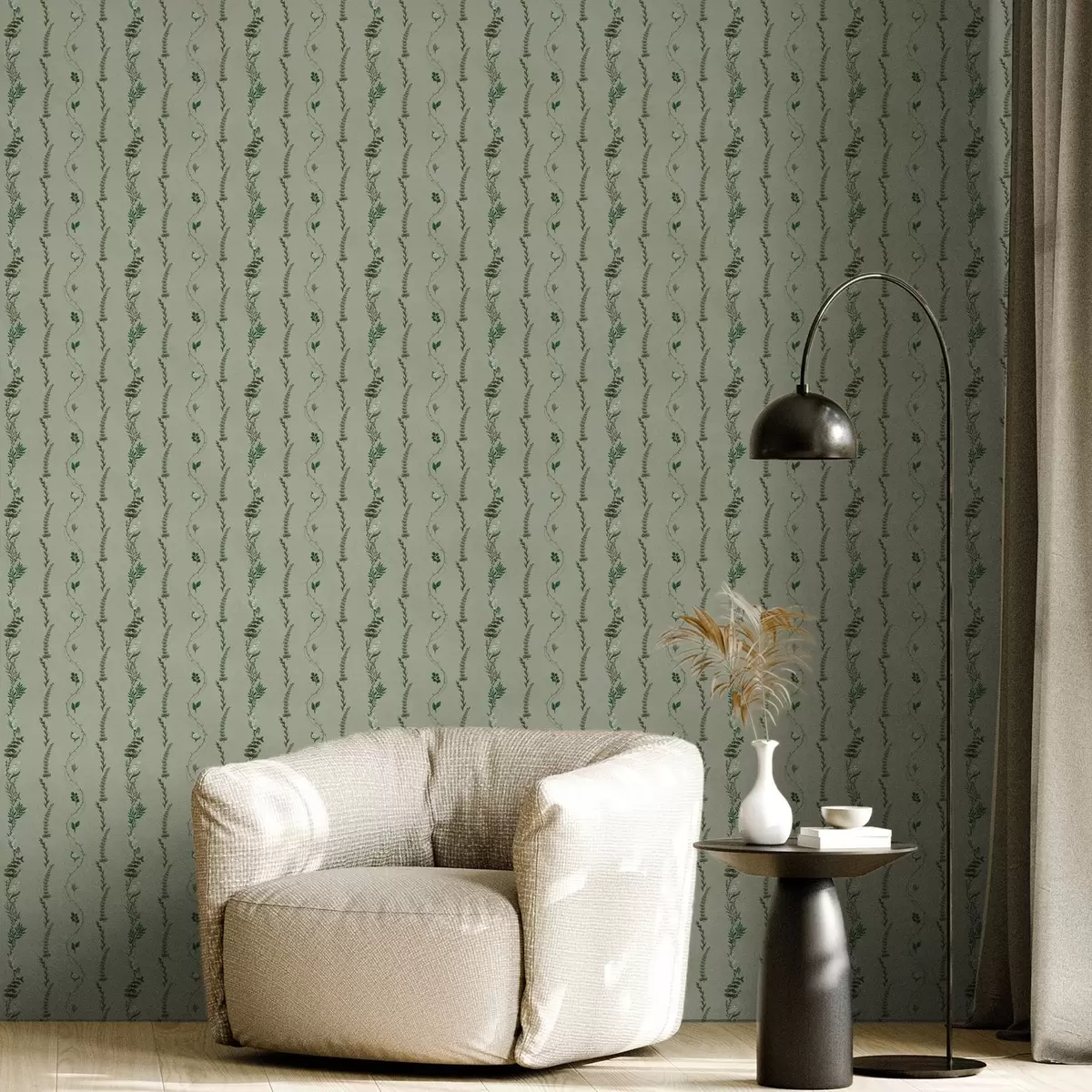 Шпалери Вертикальні лози та гілочки на приглушеному зеленому тлі Nr. a00817v1