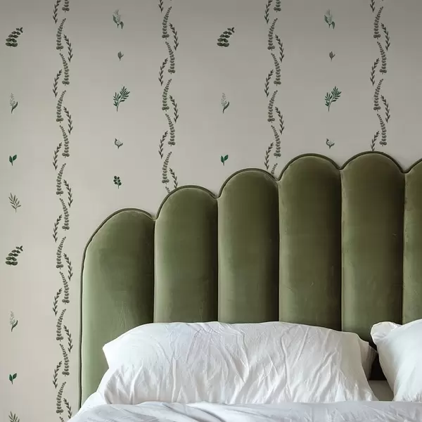 Шпалери Рідкі зелені пагони у вертикальному ритмі, кремовий фон Nr. a00818