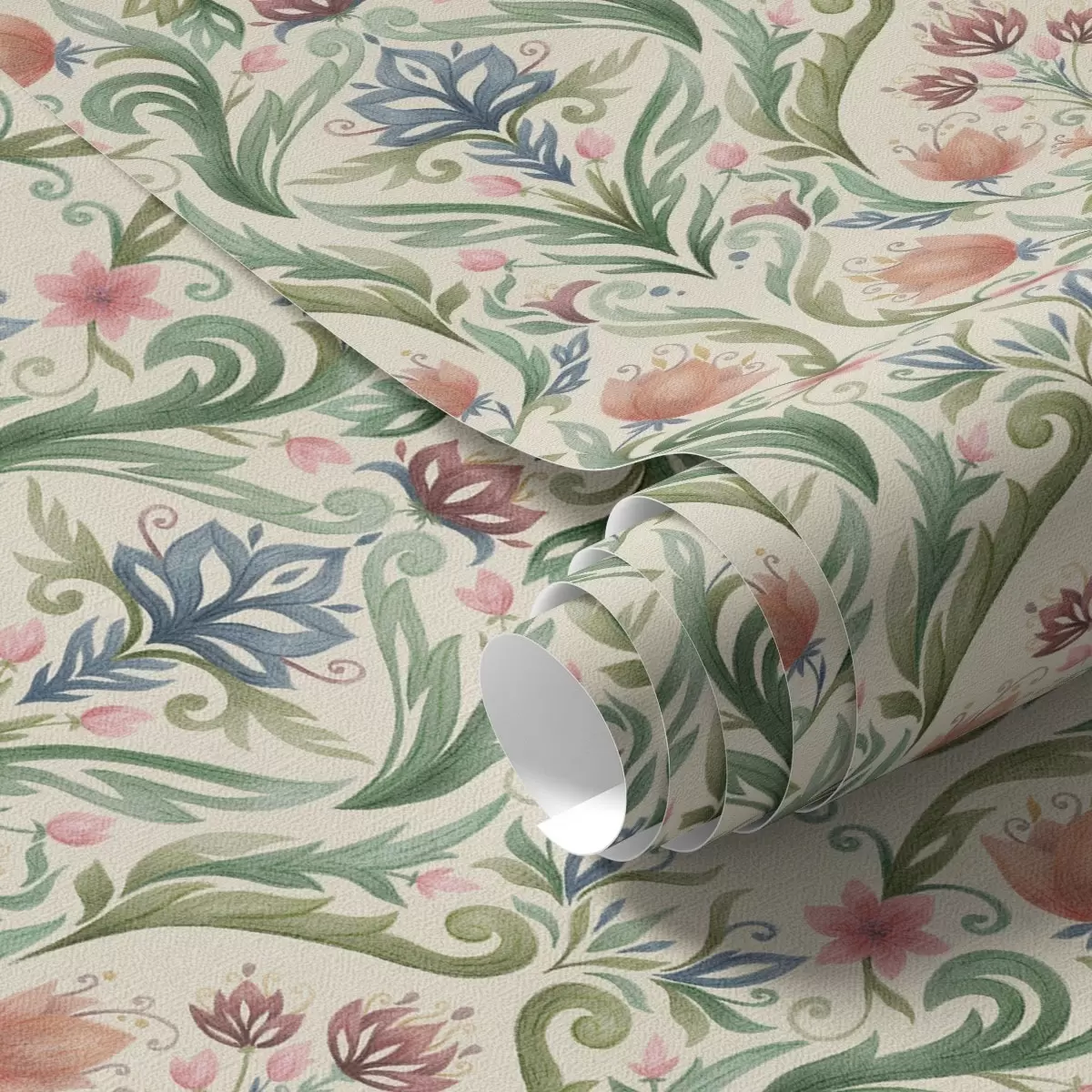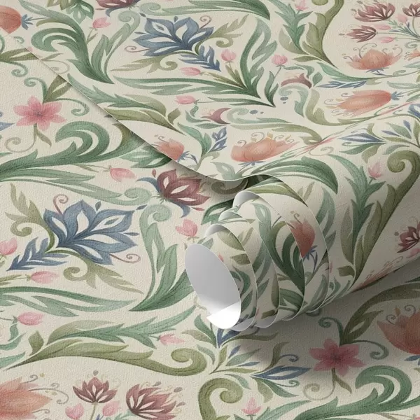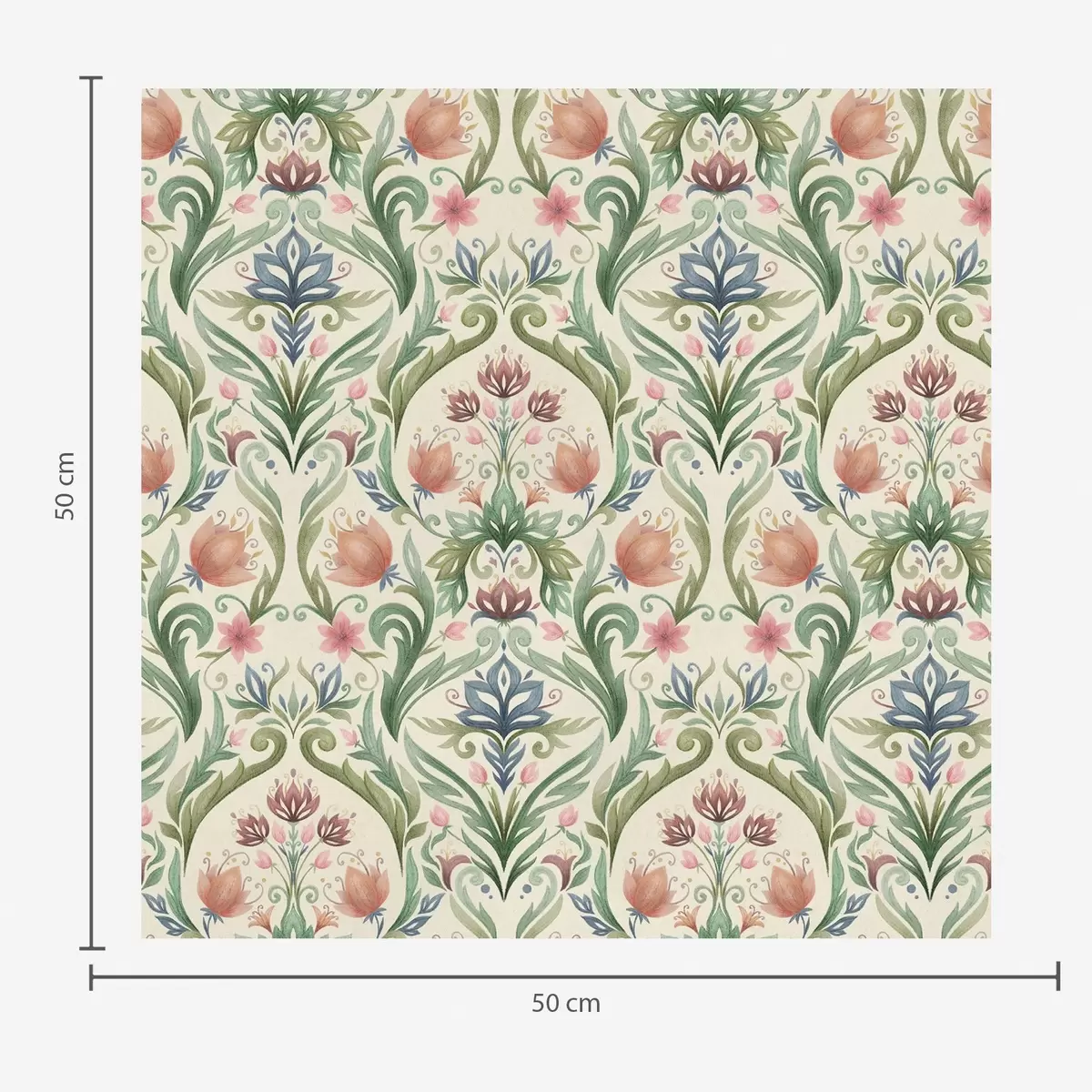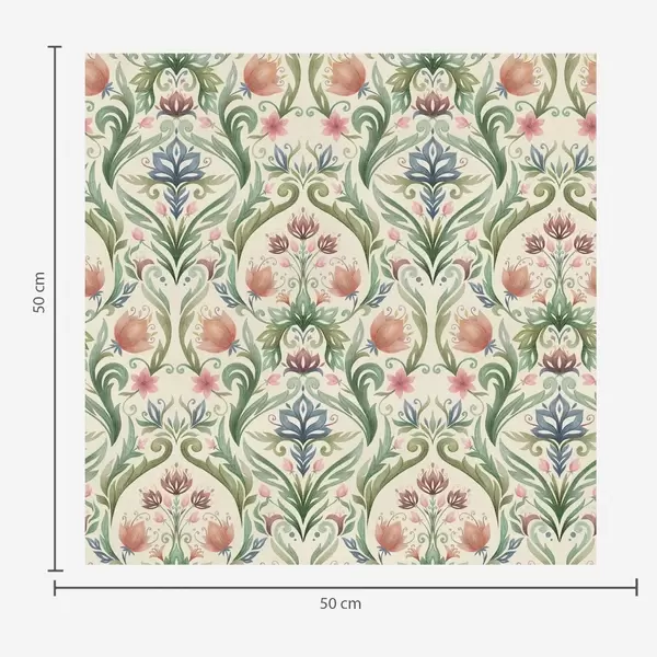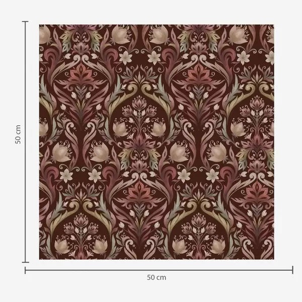 Шпалери Симетричний квітковий орнамент, теракота і зелений колір Nr. a00827