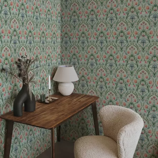 Шпалери Симетричний квітковий орнамент, м'ятно-кремова палітра Nr. a00827v1