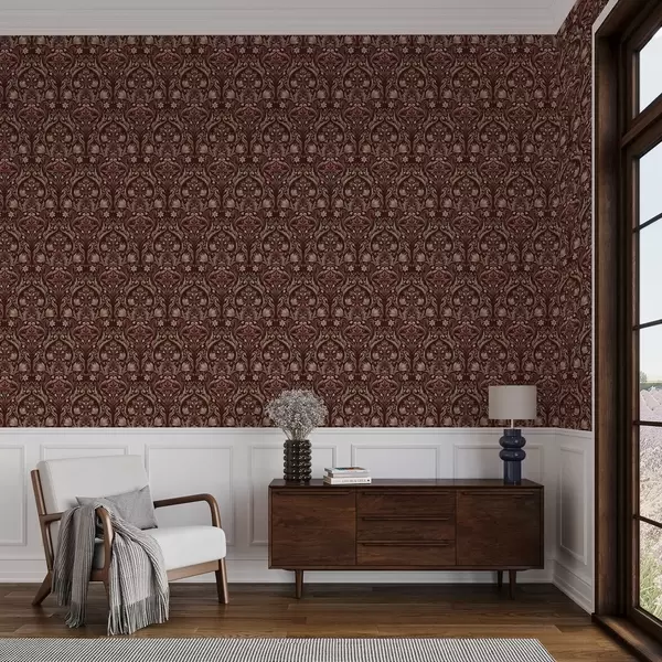 Шпалери Орнамент з тюльпанами, насичений бордовий фон Nr. a00827v2