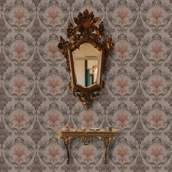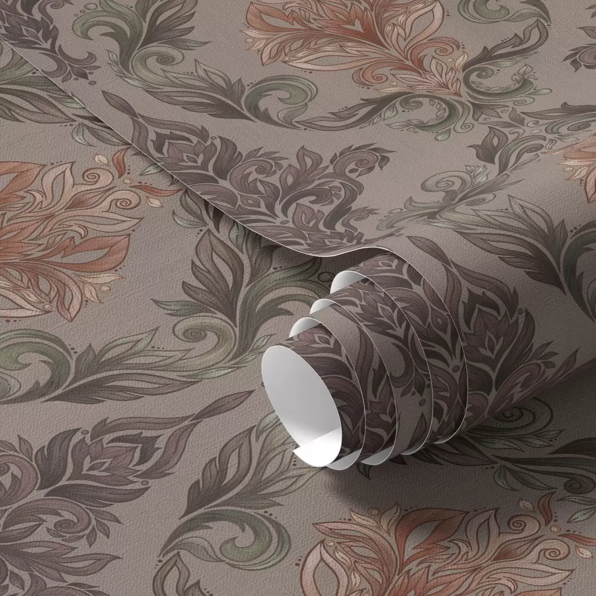 Шпалери Дамаск у коричнево-теракотовій палітрі, теплий сірий фон Nr. a00828v2