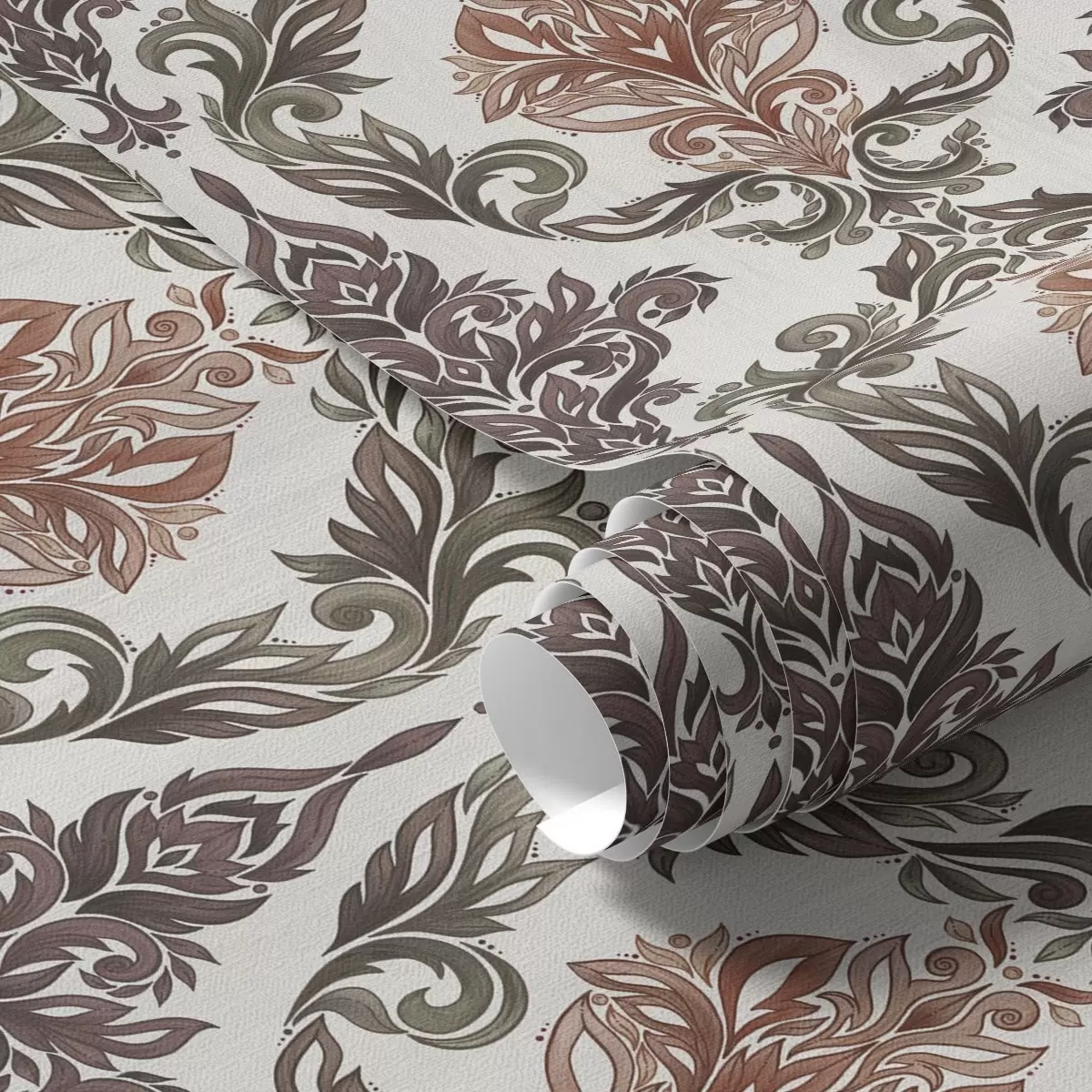 Шпалери Дамаск з мідно-коричневими акцентами на світлому тлі Nr. a00828v4