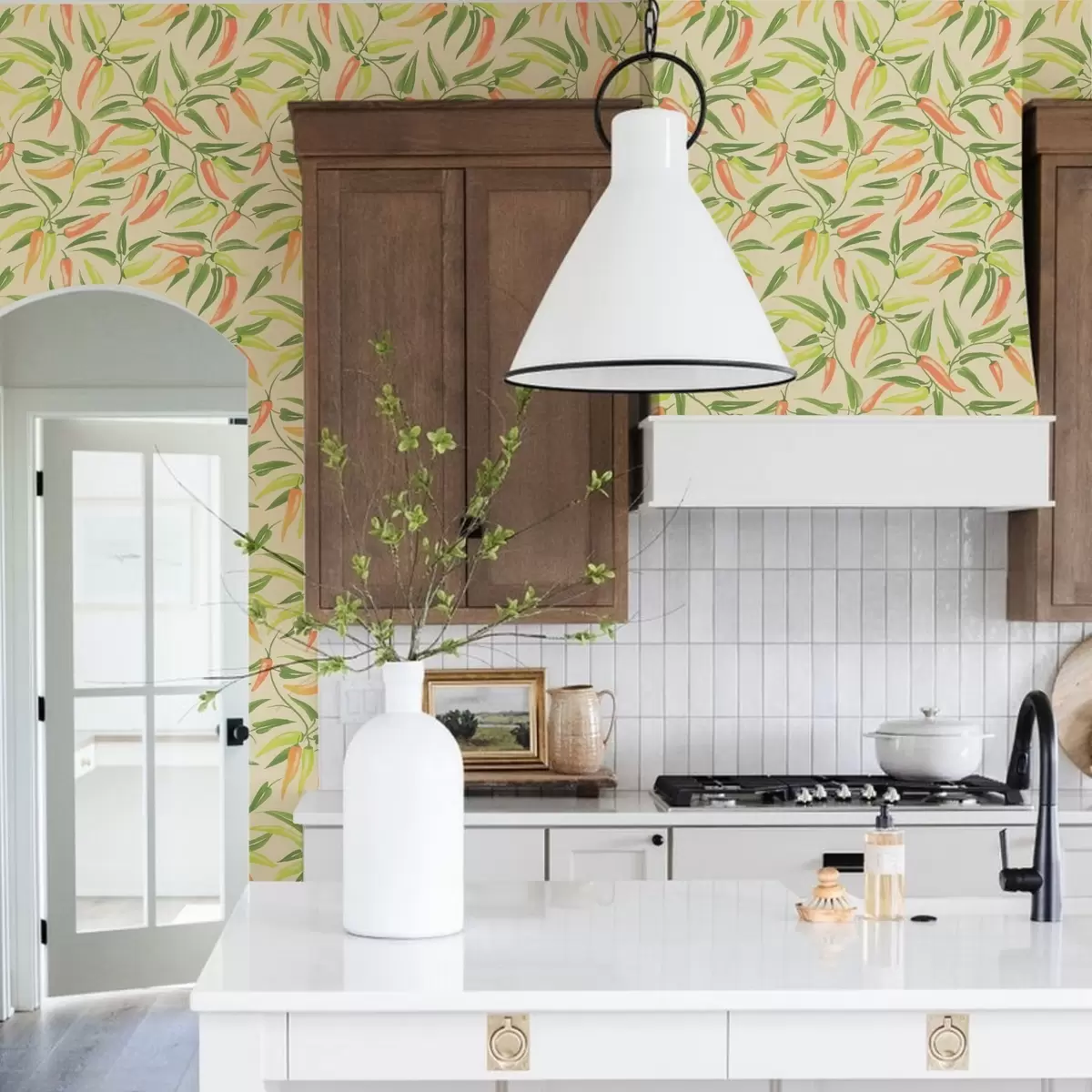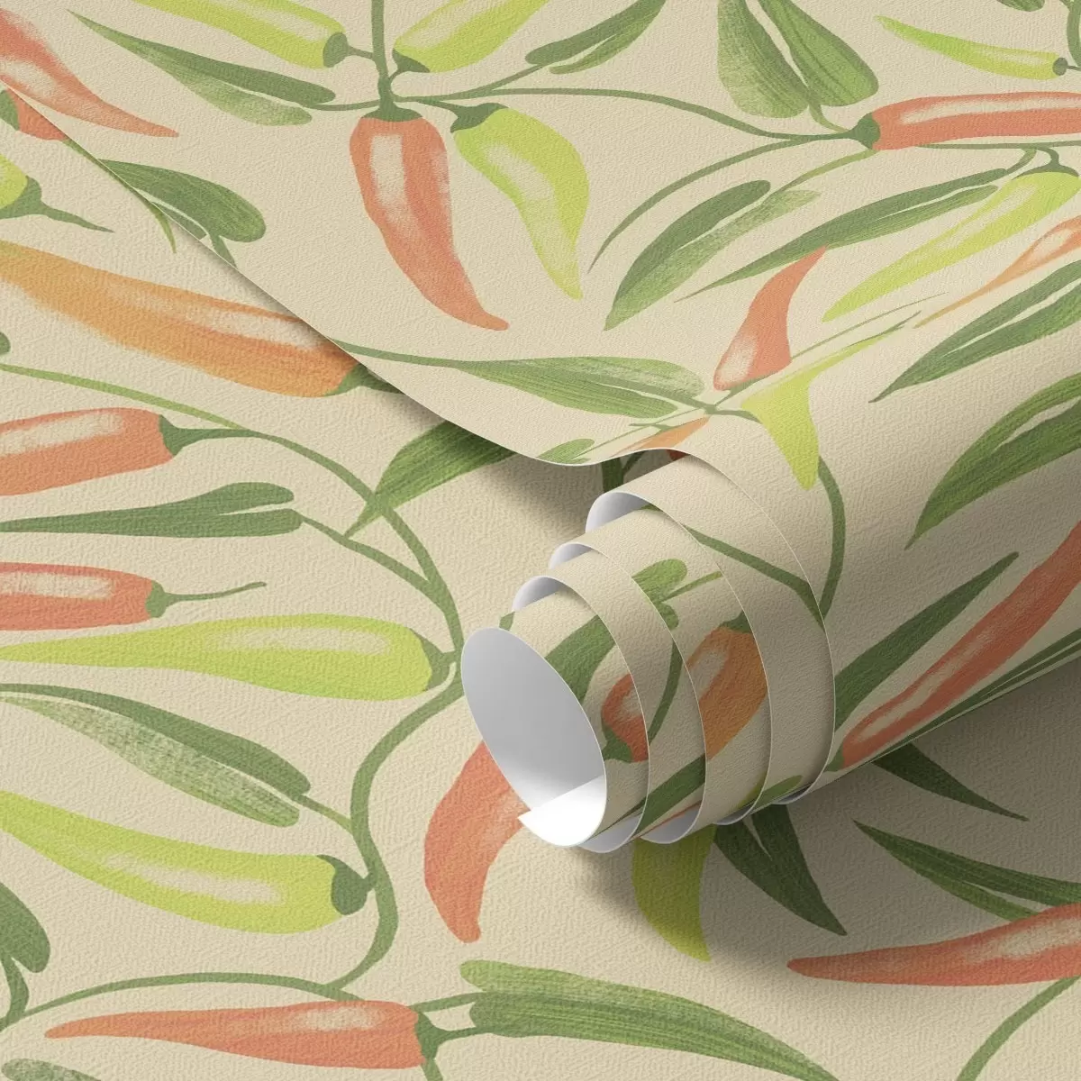 Шпалери Гілки з червоним і зеленим перцем на теплому тлі Nr. a00829