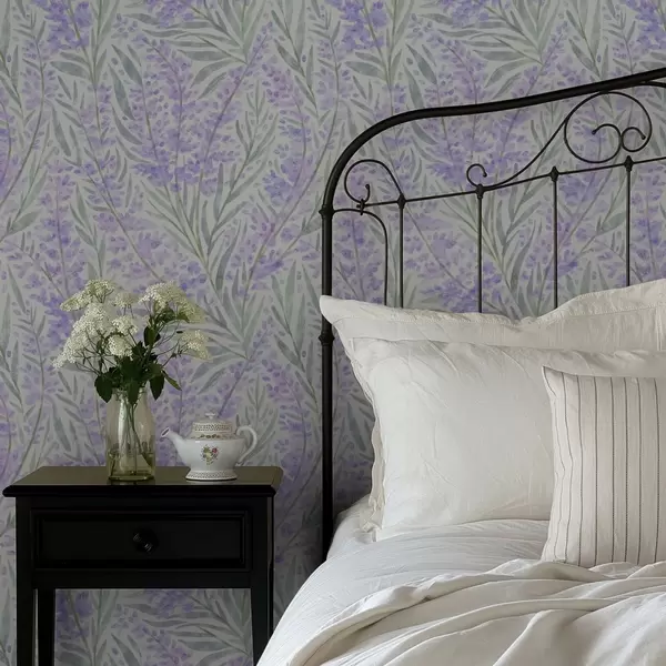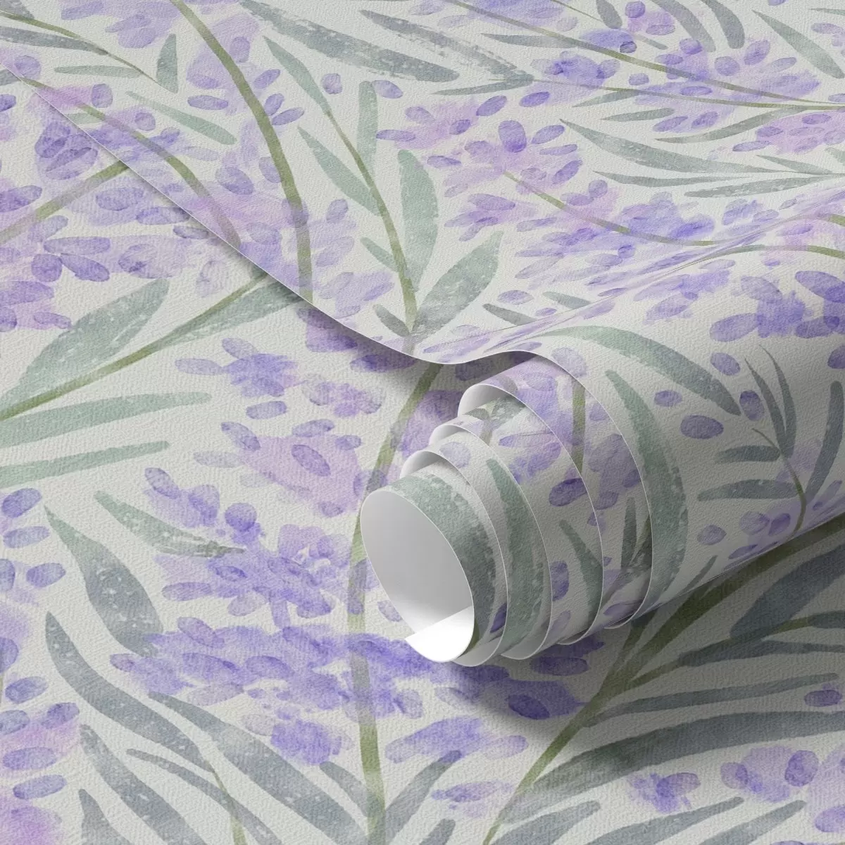 Шпалери Гілки лаванди в фіолетових тонах на світлому тлі Nr. a00835