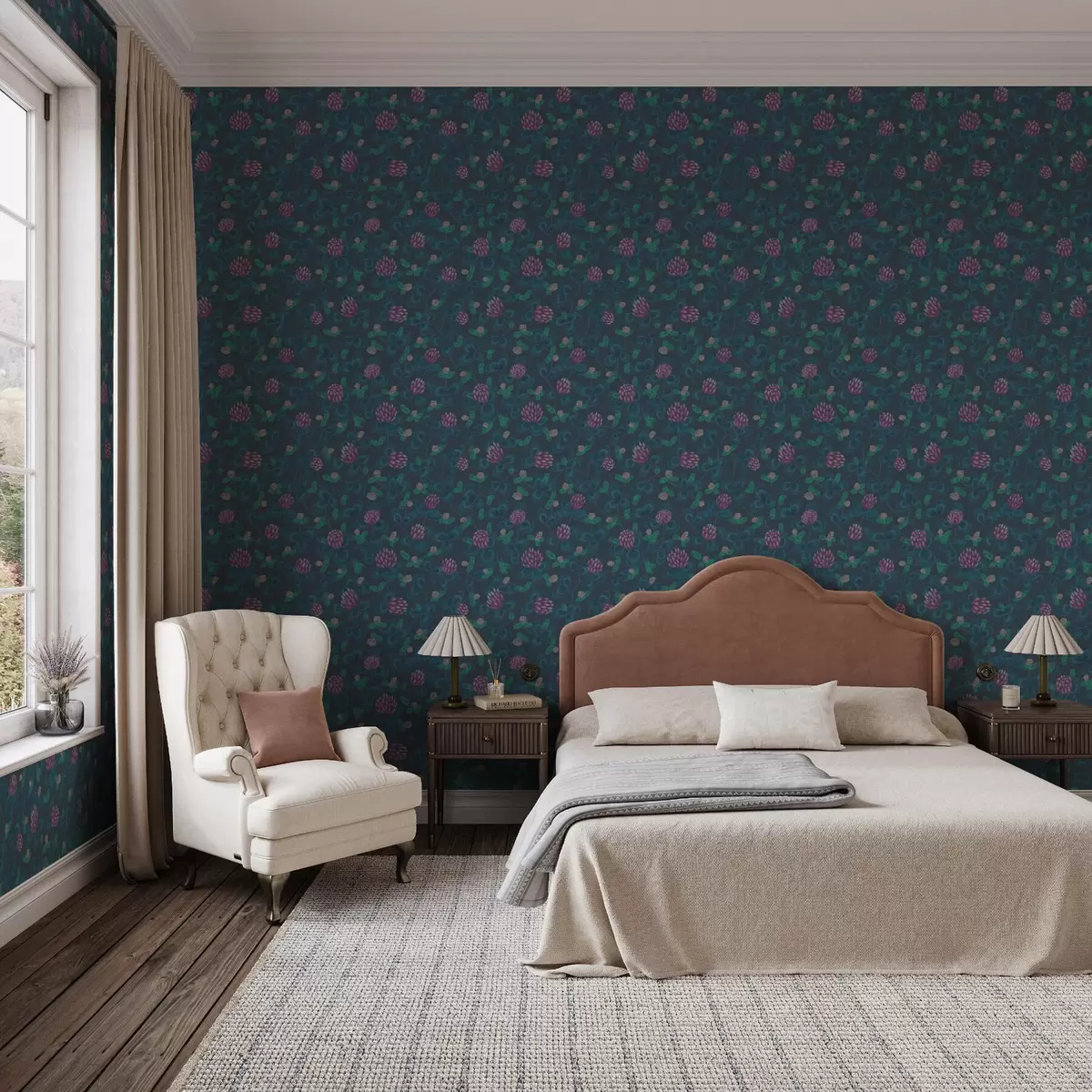 Шпалери Конюшина з фіолетовими квітами на темно-синьому тлі Nr. a00836