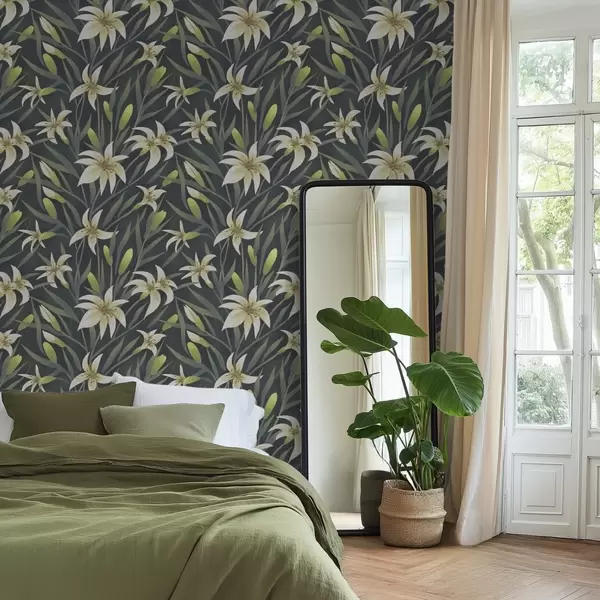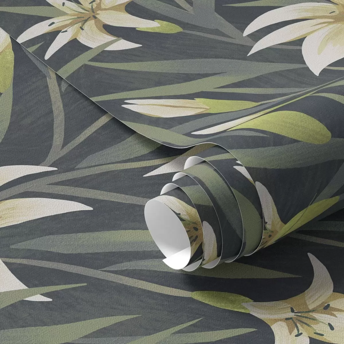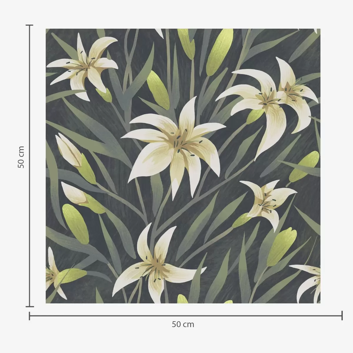 Шпалери Кремові лілії з листям на темному тлі Nr. a00837v1