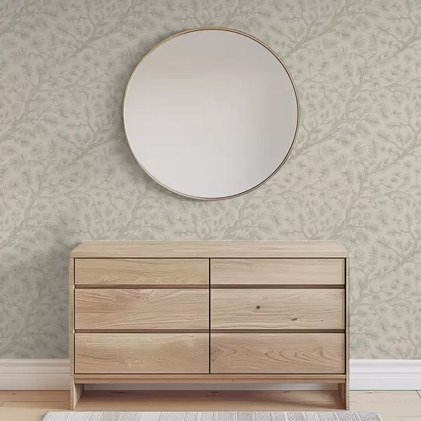 Шпалери Соснові гілки в світло-зелених тонах на бежевому тлі Nr. a00838v1