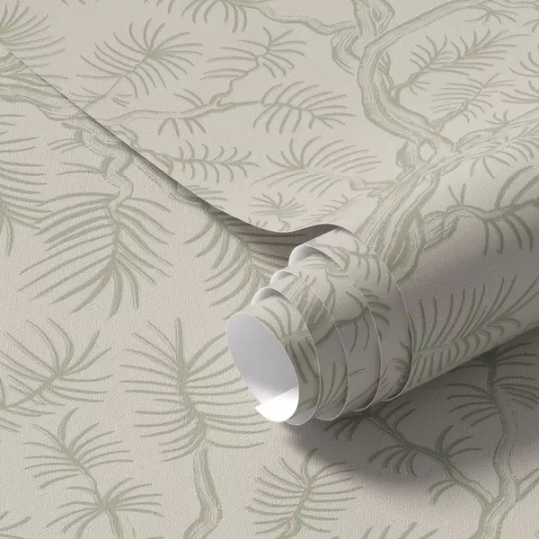 Шпалери Соснові гілки в світло-зелених тонах на бежевому тлі Nr. a00838v1