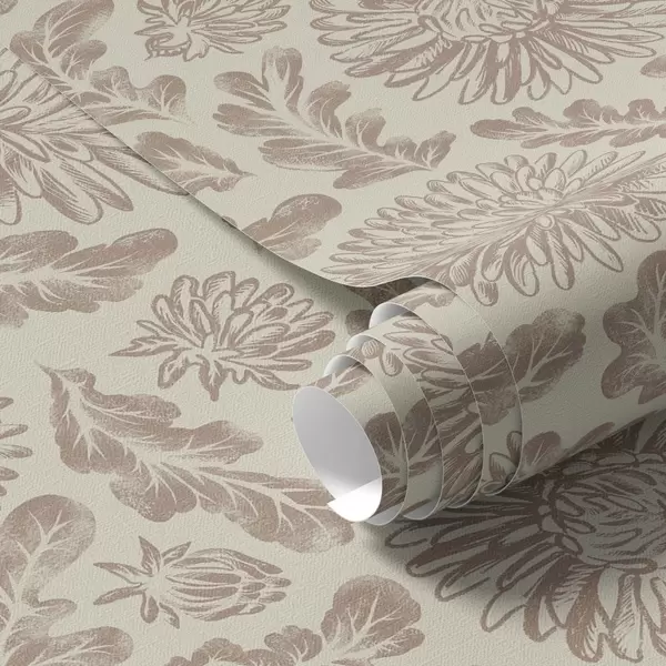 Шпалери Хризантеми та дубове листя в ніжних бежево-коричневих тонах Nr. a00840