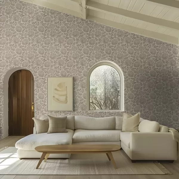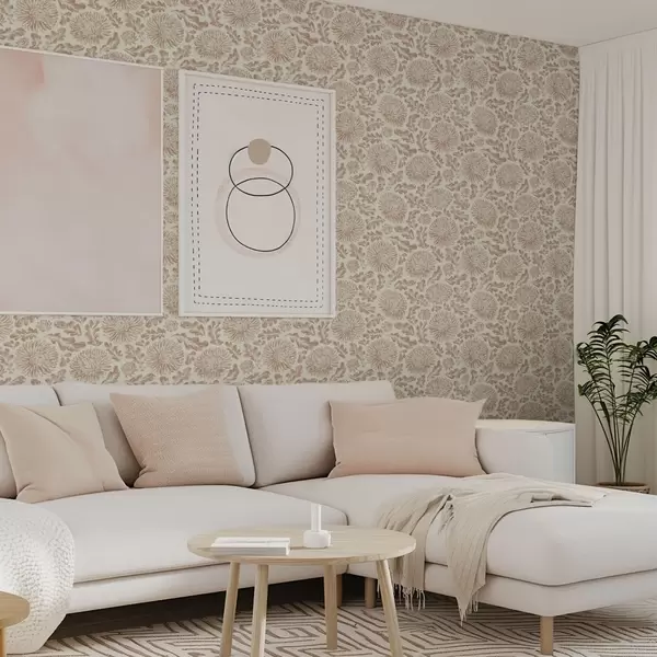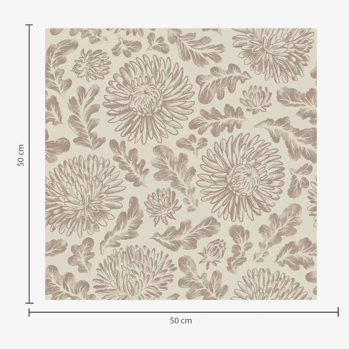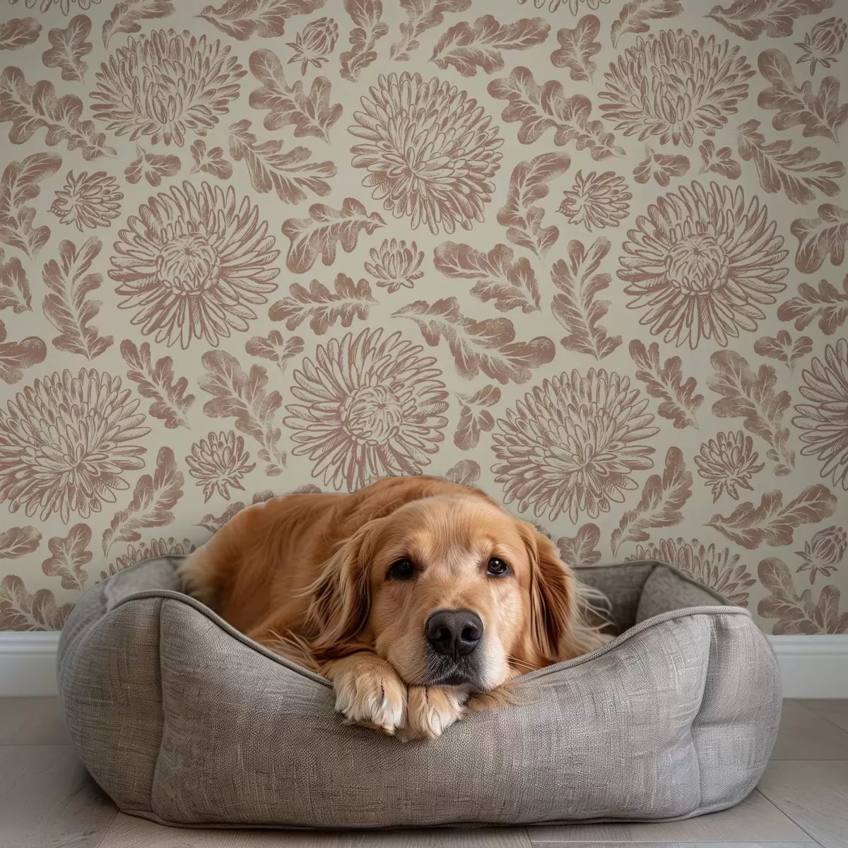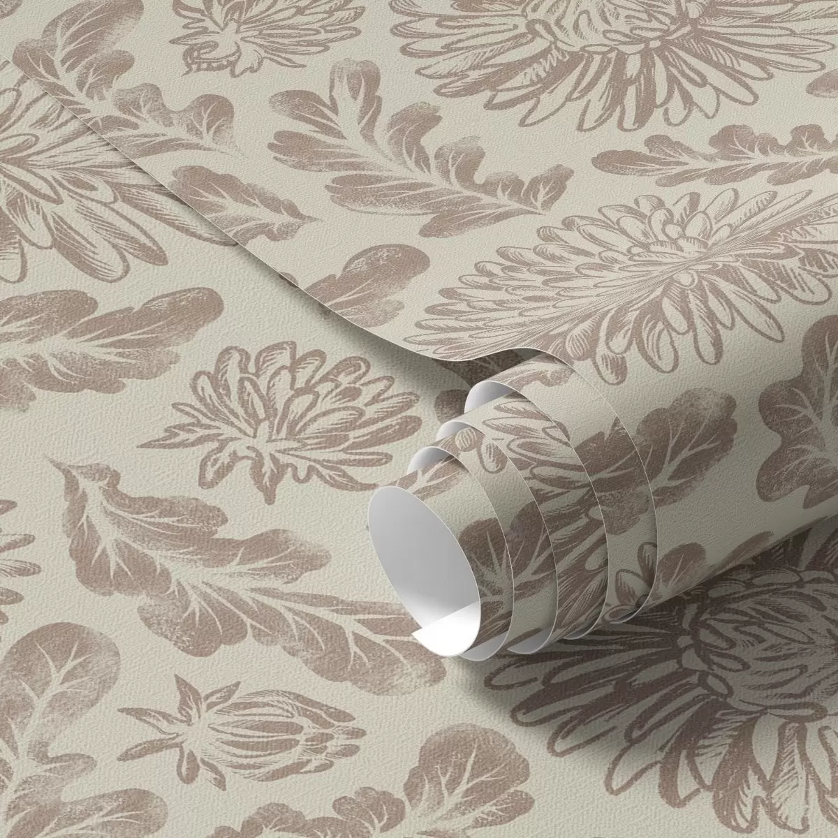 Шпалери Хризантеми та дубове листя в ніжних бежево-коричневих тонах Nr. a00840