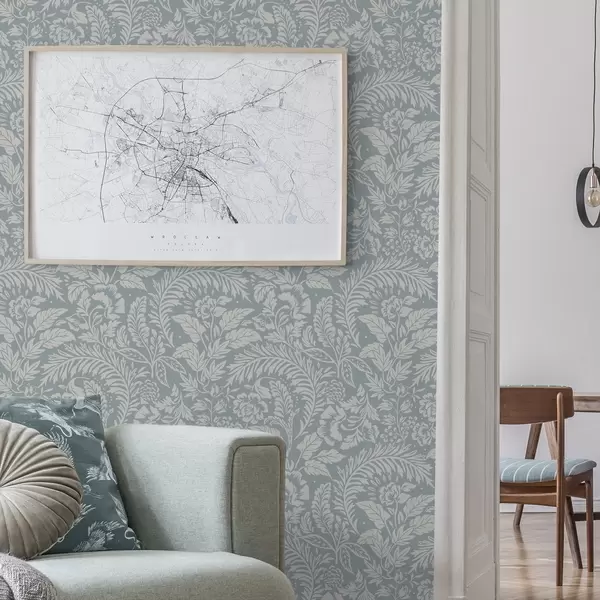 Шпалери Монохромний квітковий візерунок на сіро-блакитному тлі Nr. a00859