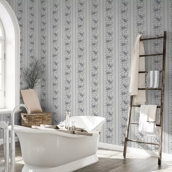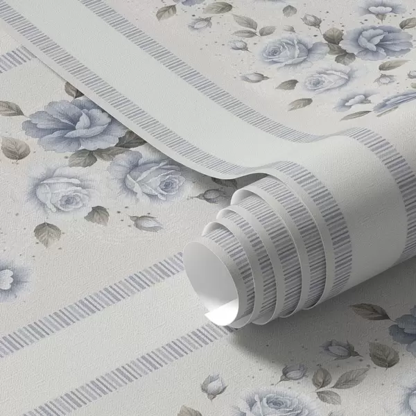 Шпалери Блакитні троянди у вертикальних смугах на світлому тлі Nr. a00860