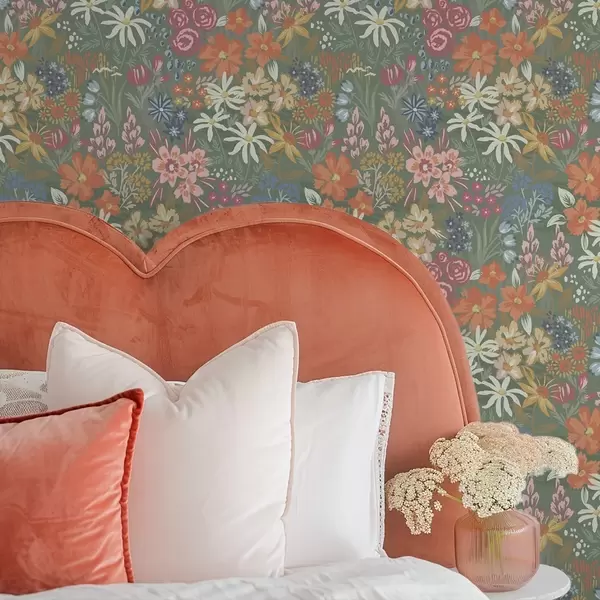 Шпалери Мальовничі лугові квіти на салатовому тлі Nr. a00864