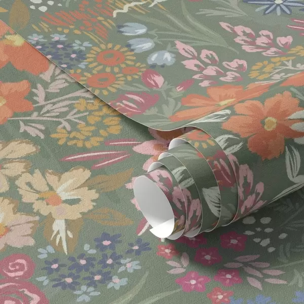 Шпалери Мальовничі лугові квіти на салатовому тлі Nr. a00864