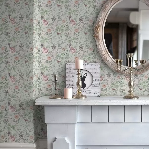 Шпалери Пастельний сад з трояндами, папоротями та виноградом a00867