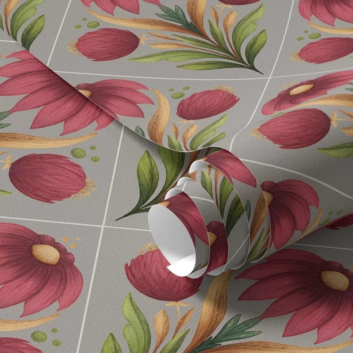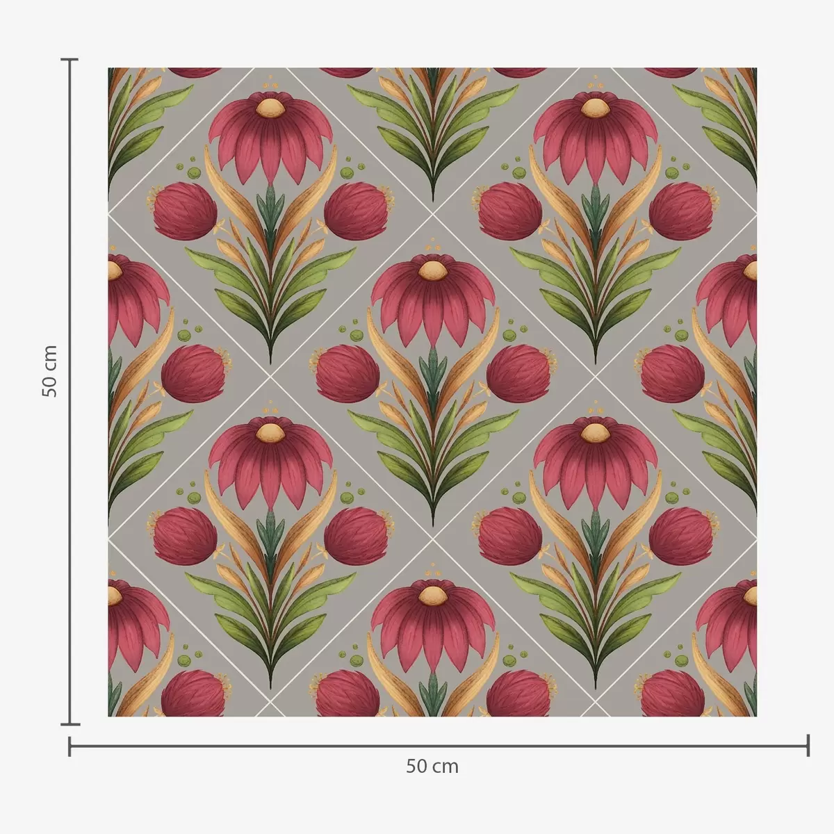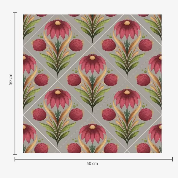 Шпалери Симетричний квітковий орнамент на сірому тлі з діагоналями Nr. a00869