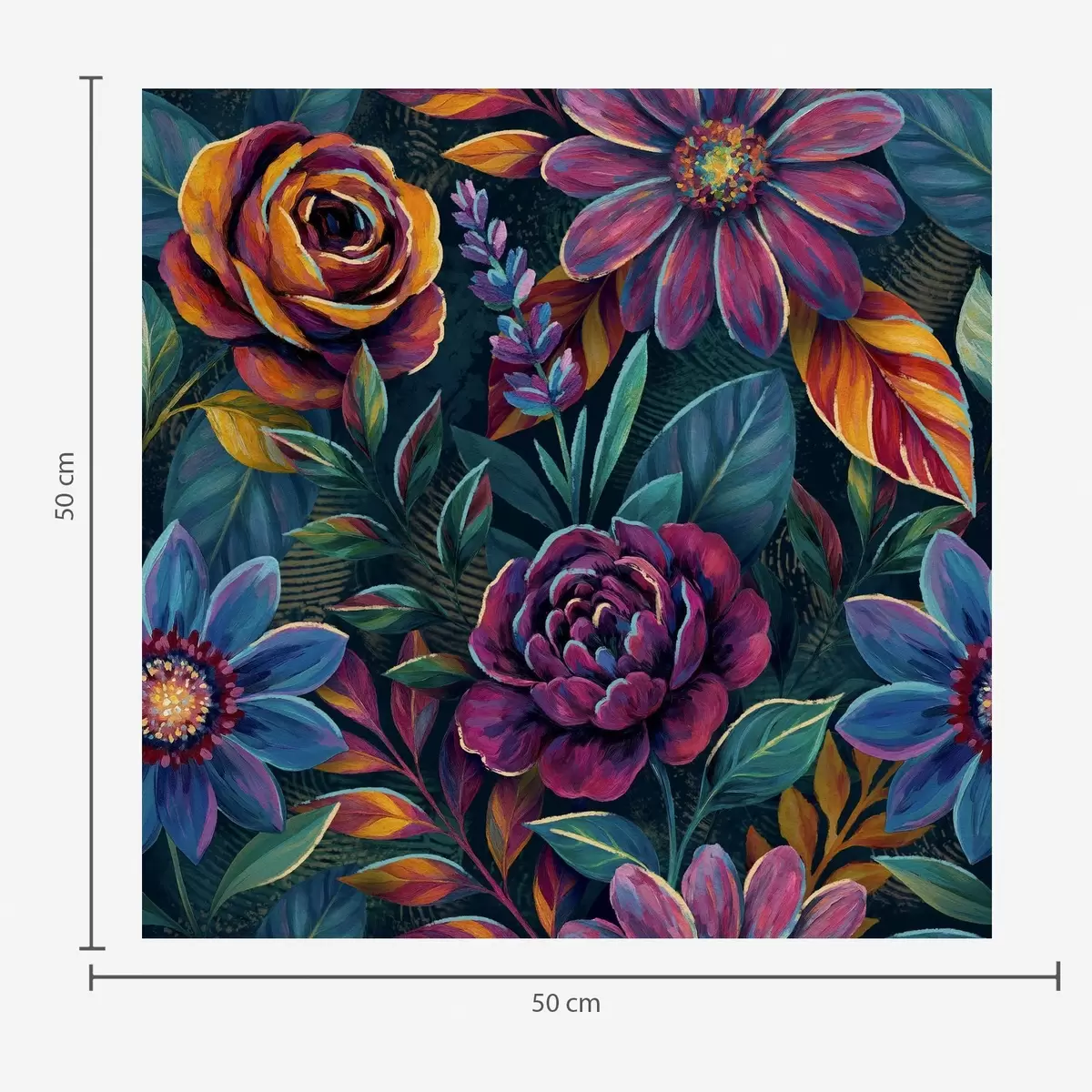 Шпалери Яскраві квіткові візерунки в кольорах дорогоцінних каменів на темно-синьому тлі Nr. a00871