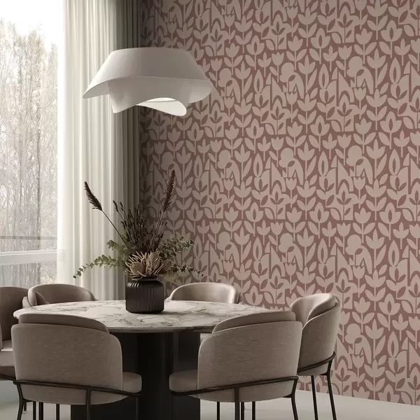 Шпалери Геометричні квіткові силуети в теракотовому та кремовому кольорах Nr. a00875v2