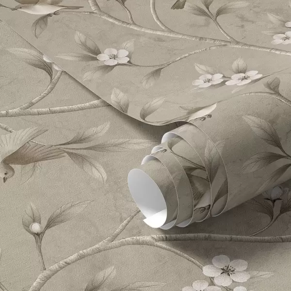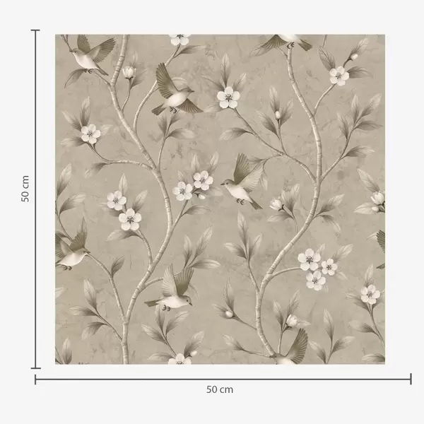 Шпалери Птахи та квітучі гілки в теплих сепійних тонах Nr. a00882