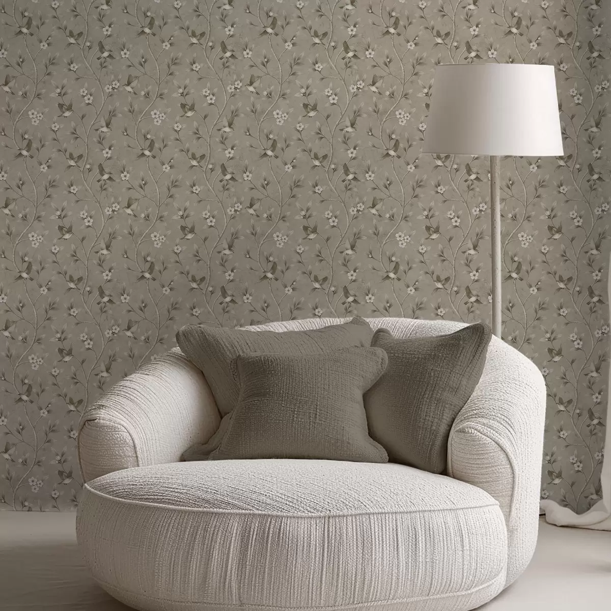 Шпалери Птахи та квітучі гілки в теплих сепійних тонах Nr. a00882