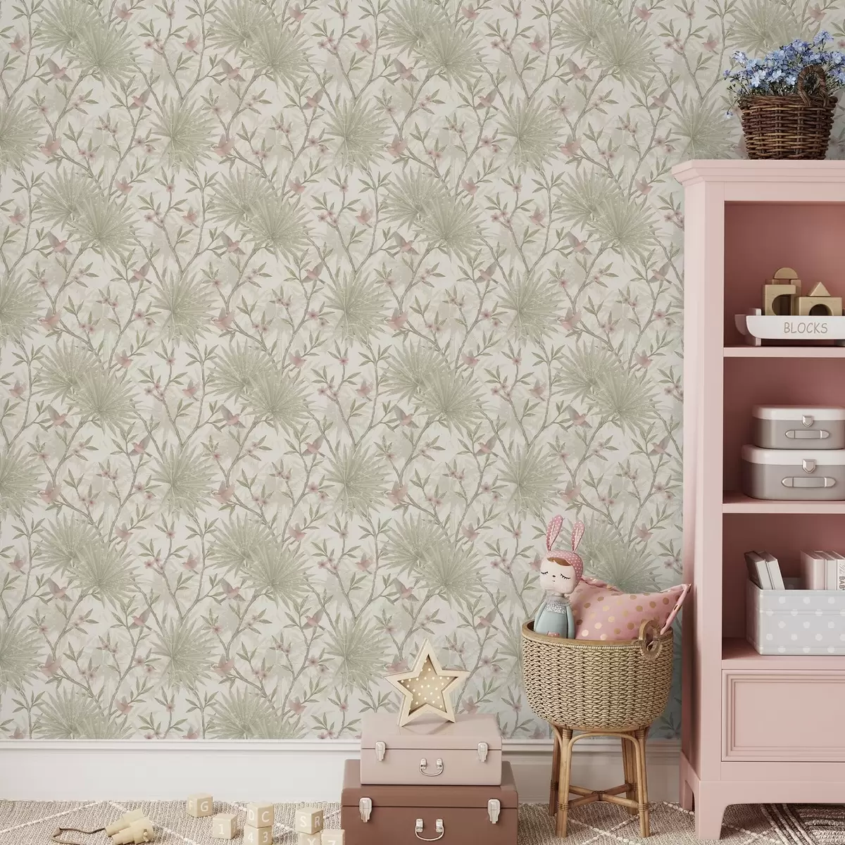 Шпалери Ніжні рожеві птахи серед пальмового листя Nr. a00883