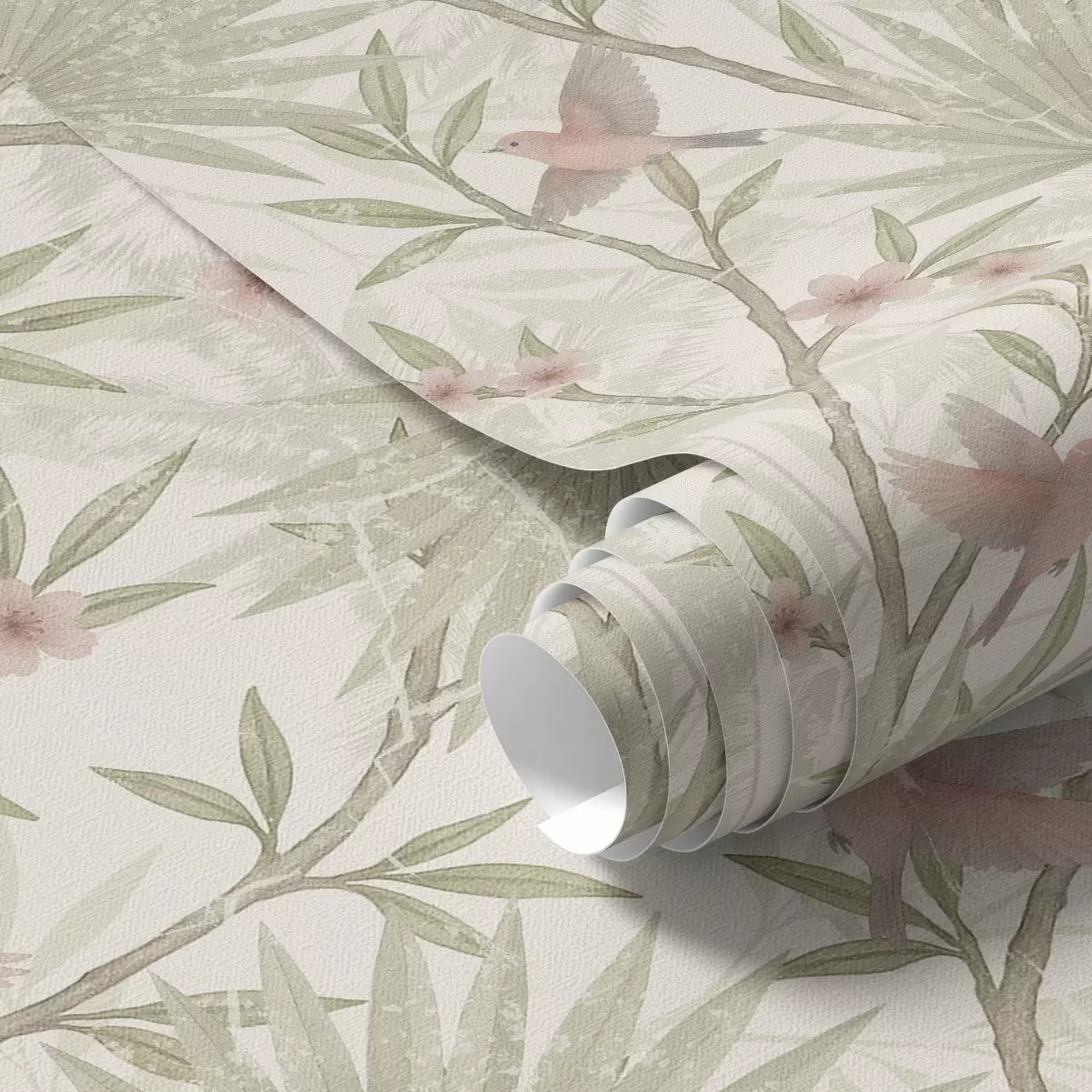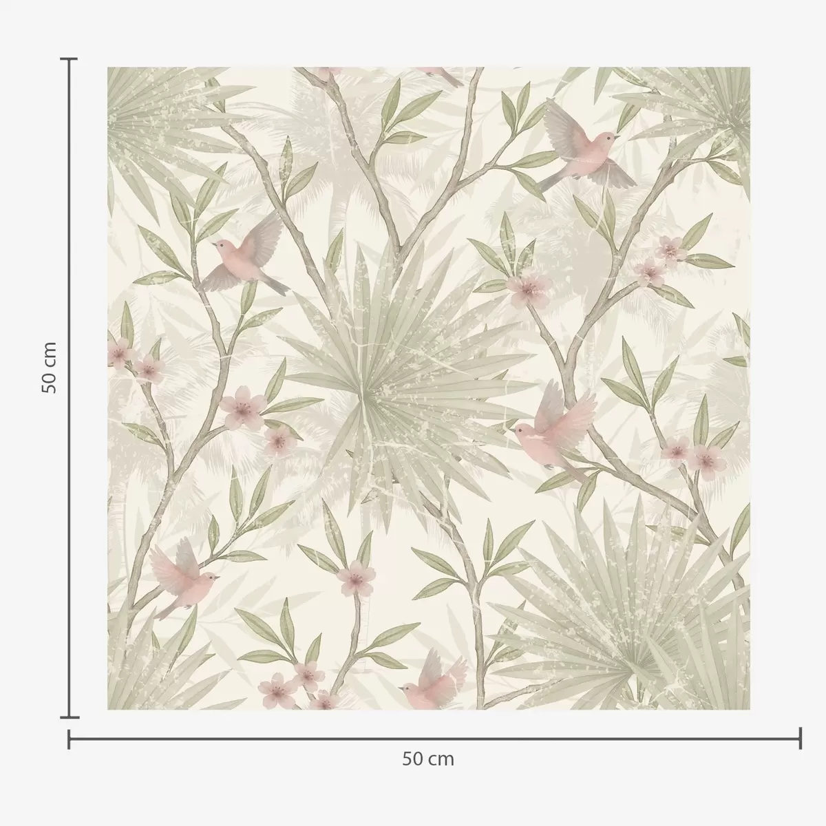 Шпалери Ніжні рожеві птахи серед пальмового листя Nr. a00883