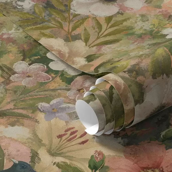Шпалери Мальовничий сад з павичами та великими квітами Nr. a00885