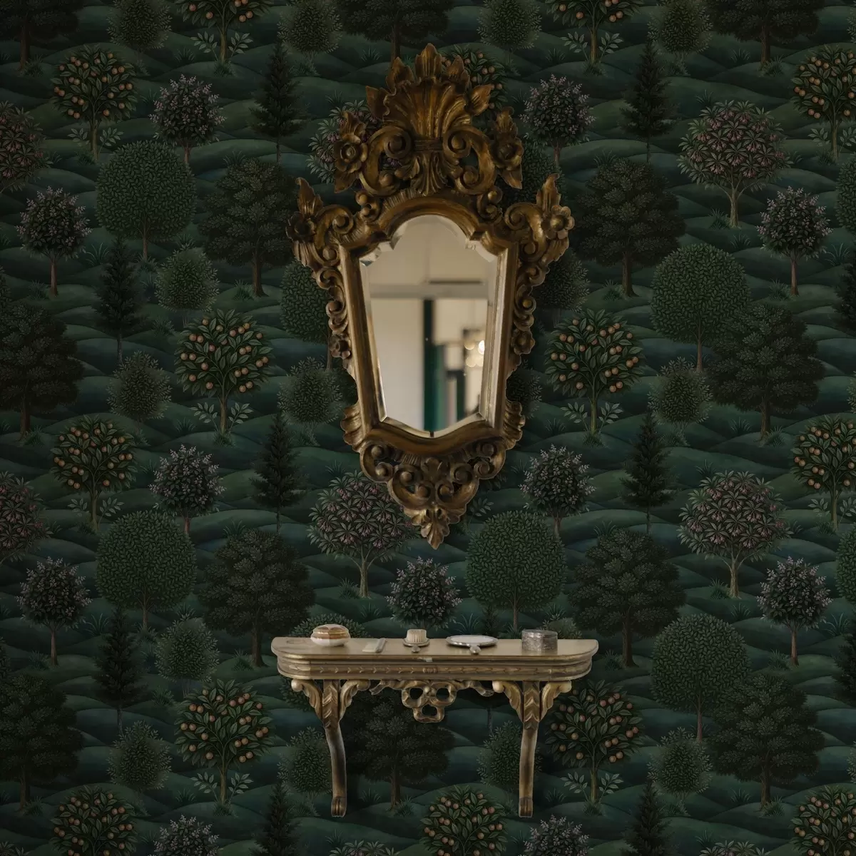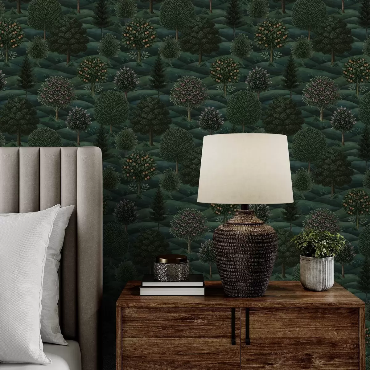 Шпалери Багатий зелений ландшафт з візерунчастими деревами Nr. a00892