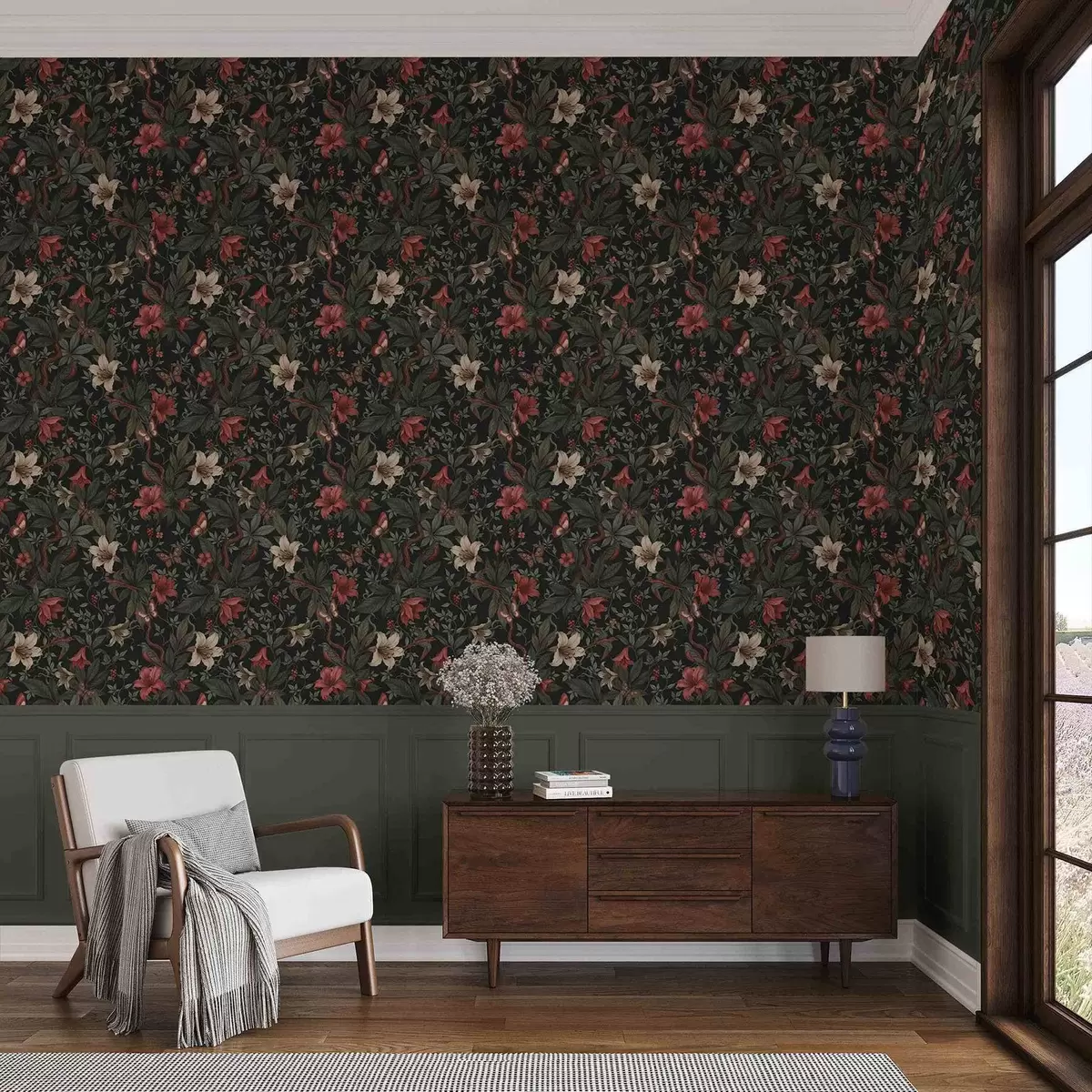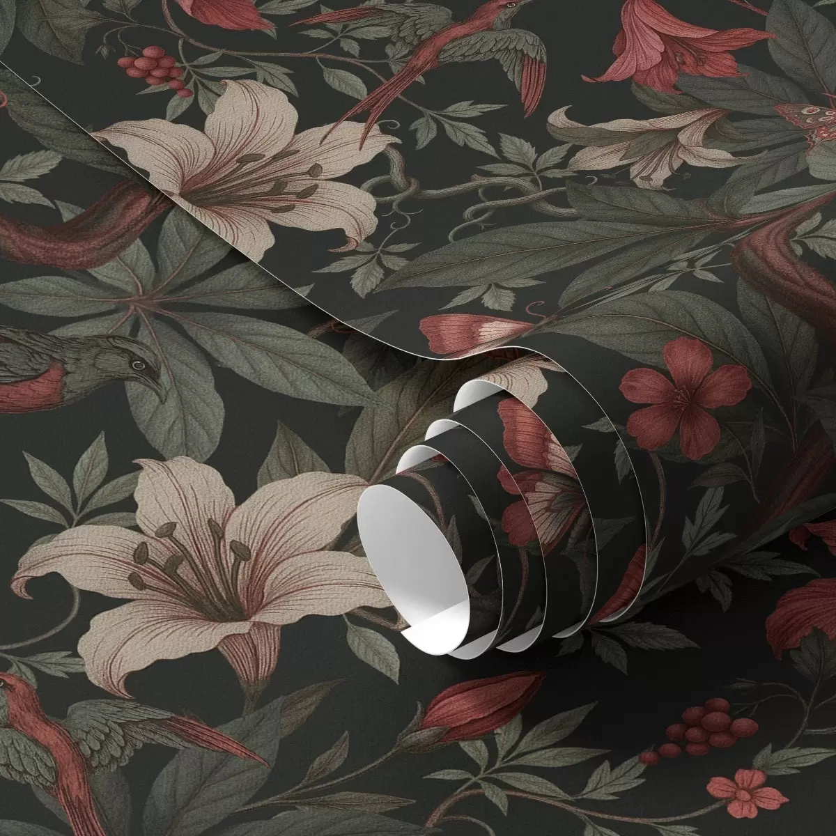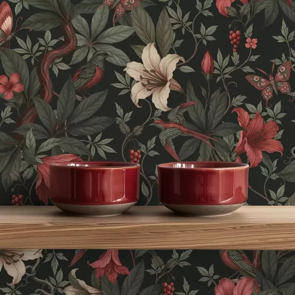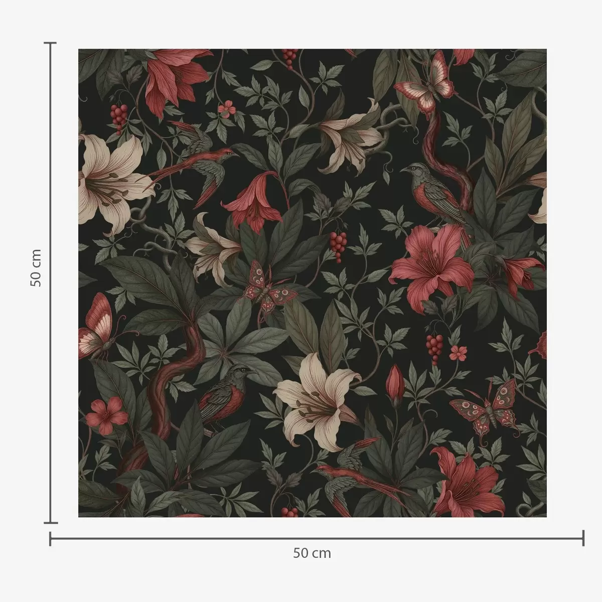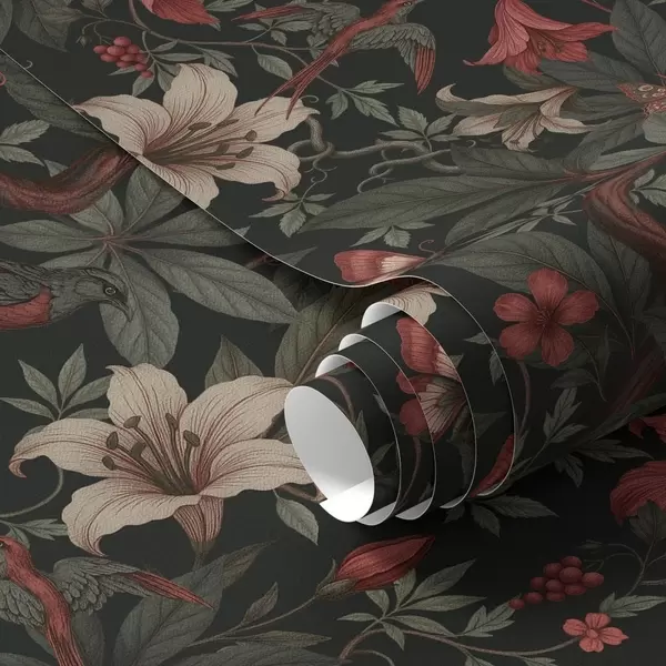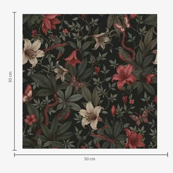 Шпалери Темні джунглі з квітами, птахами та метеликами Nr. a00895