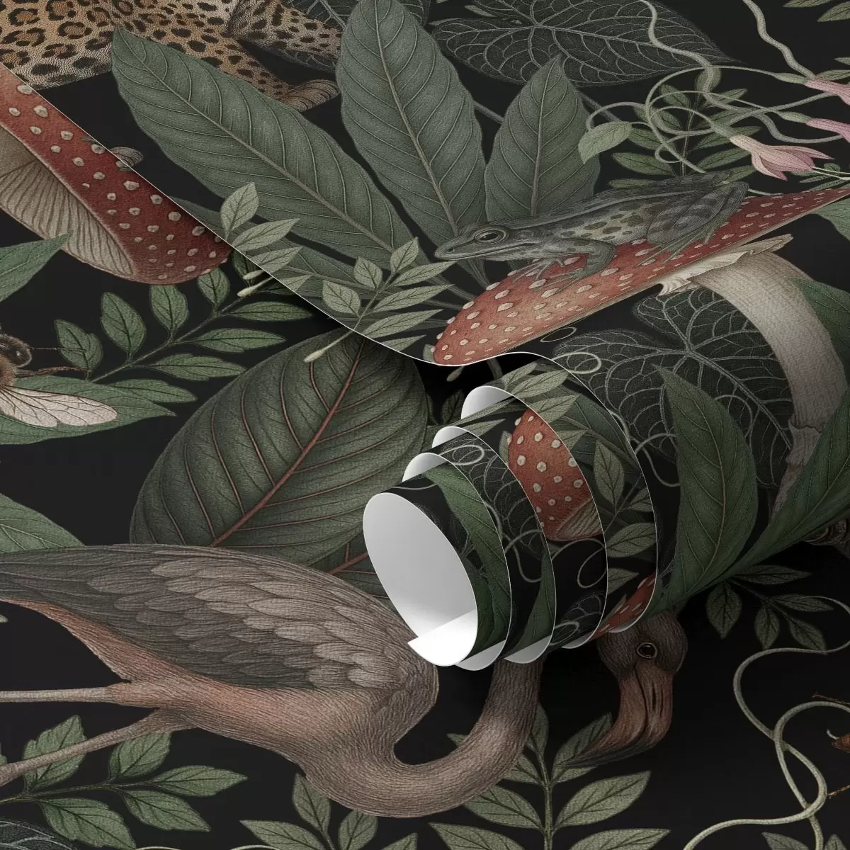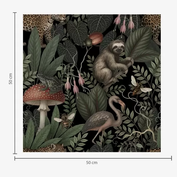Шпалери Нічні мешканці джунглів серед пишної деталізованої зелені Nr. a00896