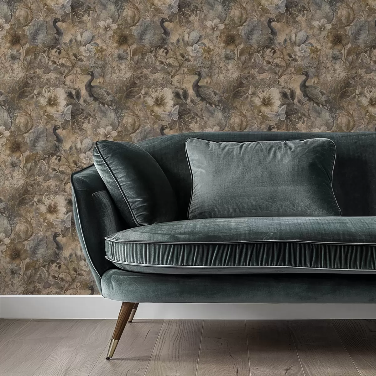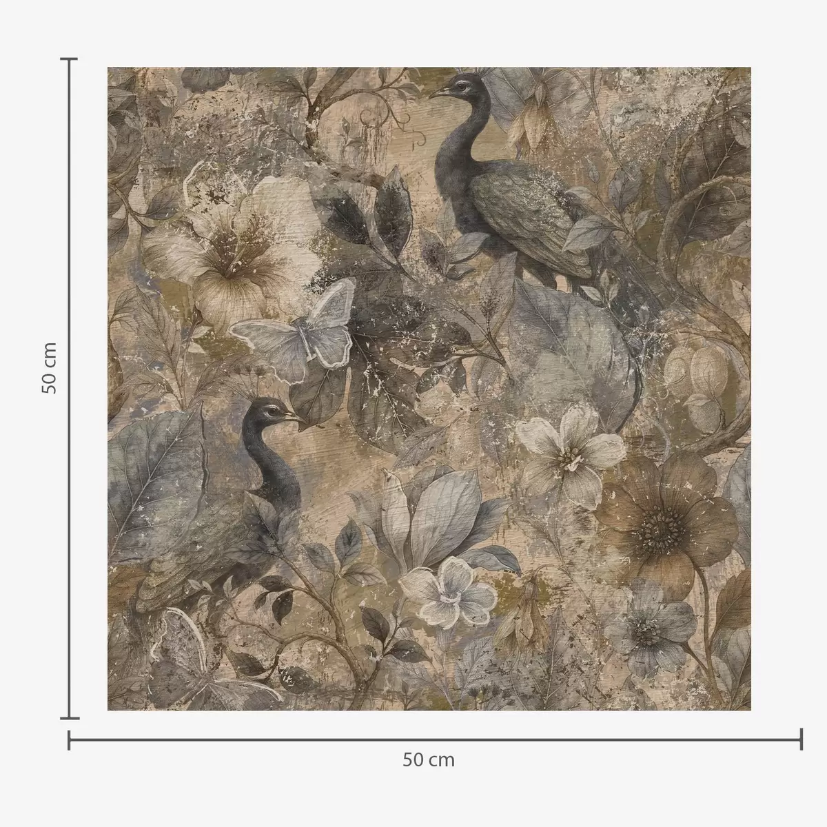 Шпалери Старовинний квітковий колаж з павичами та метеликами Nr. a00897