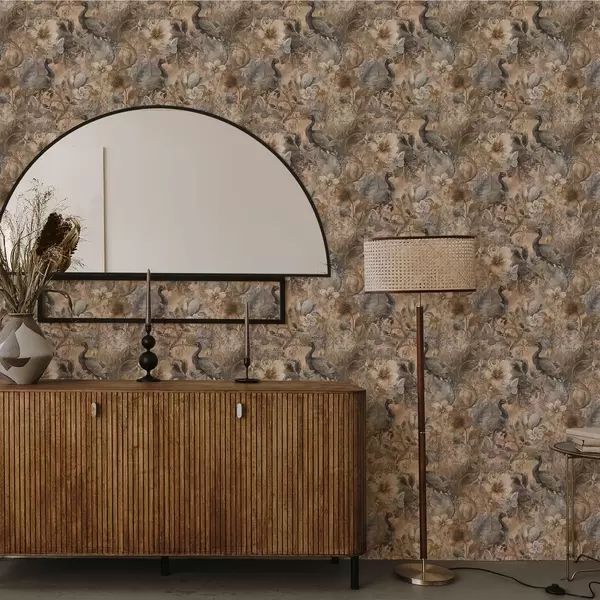 Шпалери Старовинний квітковий колаж з павичами та метеликами Nr. a00897