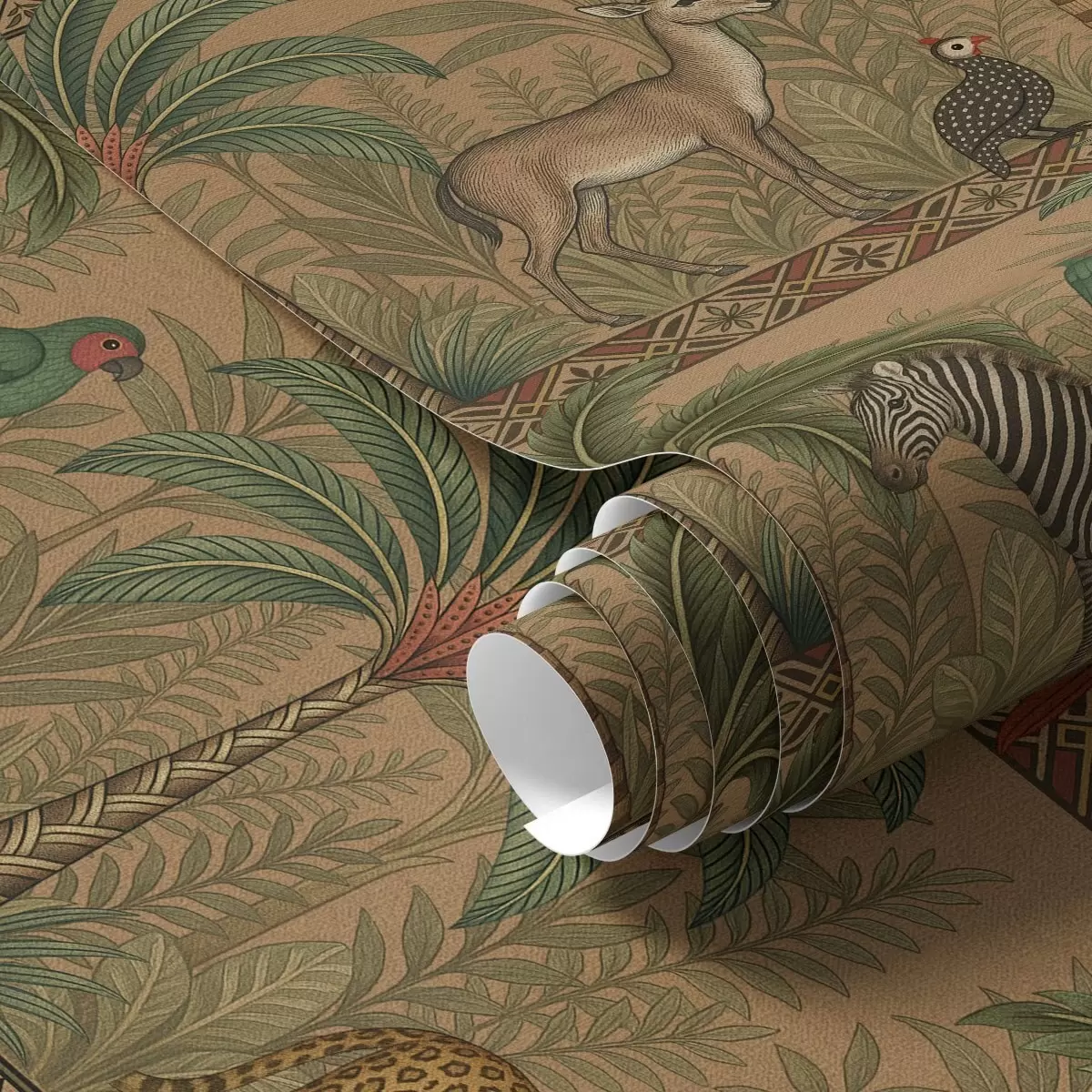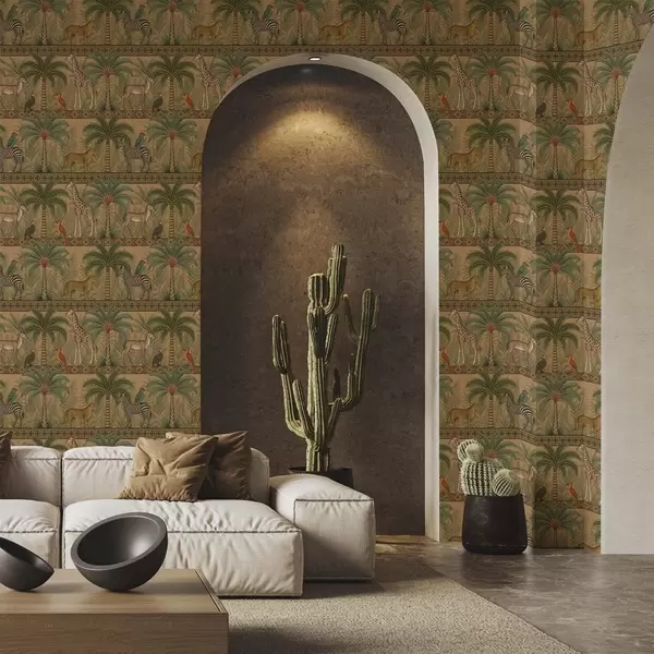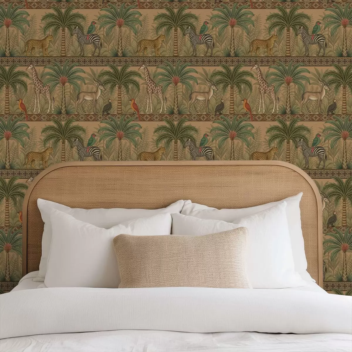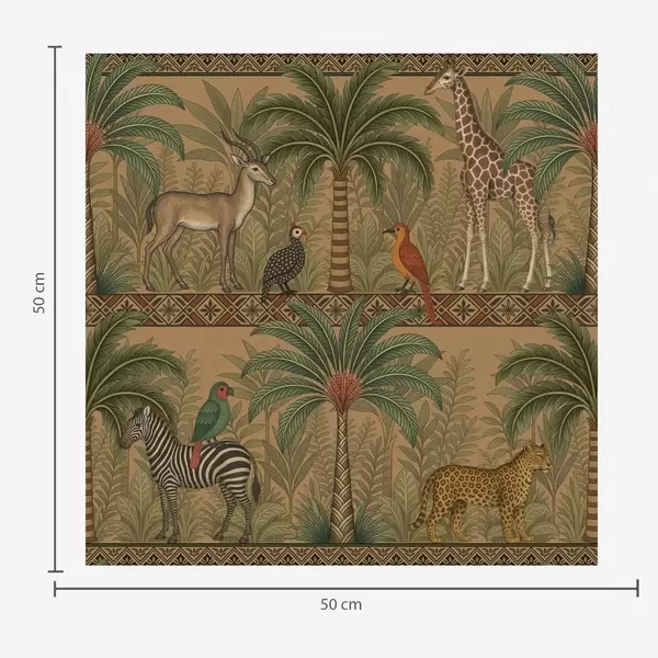 Шпалери Декоративні тварини савани між пальмами та бордюрами Nr. a00898