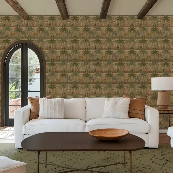 Шпалери Декоративні тварини савани між пальмами та бордюрами Nr. a00898