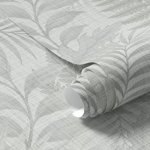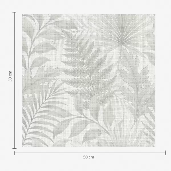 Шпалери М'які тропічні листя блідо-сірого кольору на лляній текстурі Nr. a00899