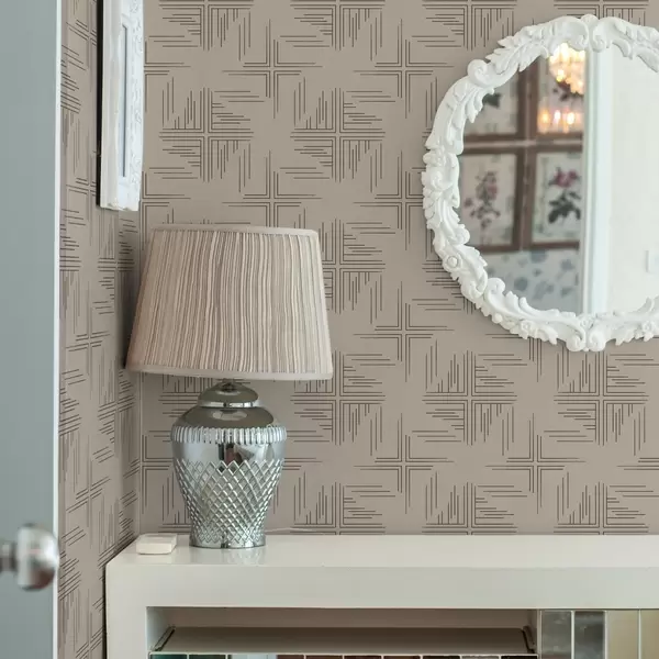 Шпалери Какао-лінійні сітки з невеликими центральними хрестами, бежеві Nr. a00911