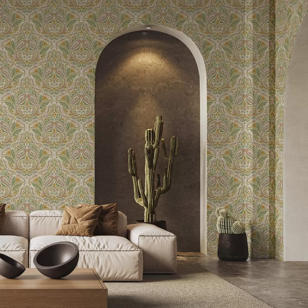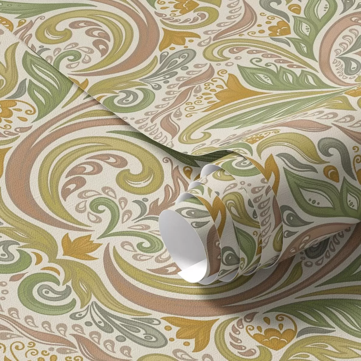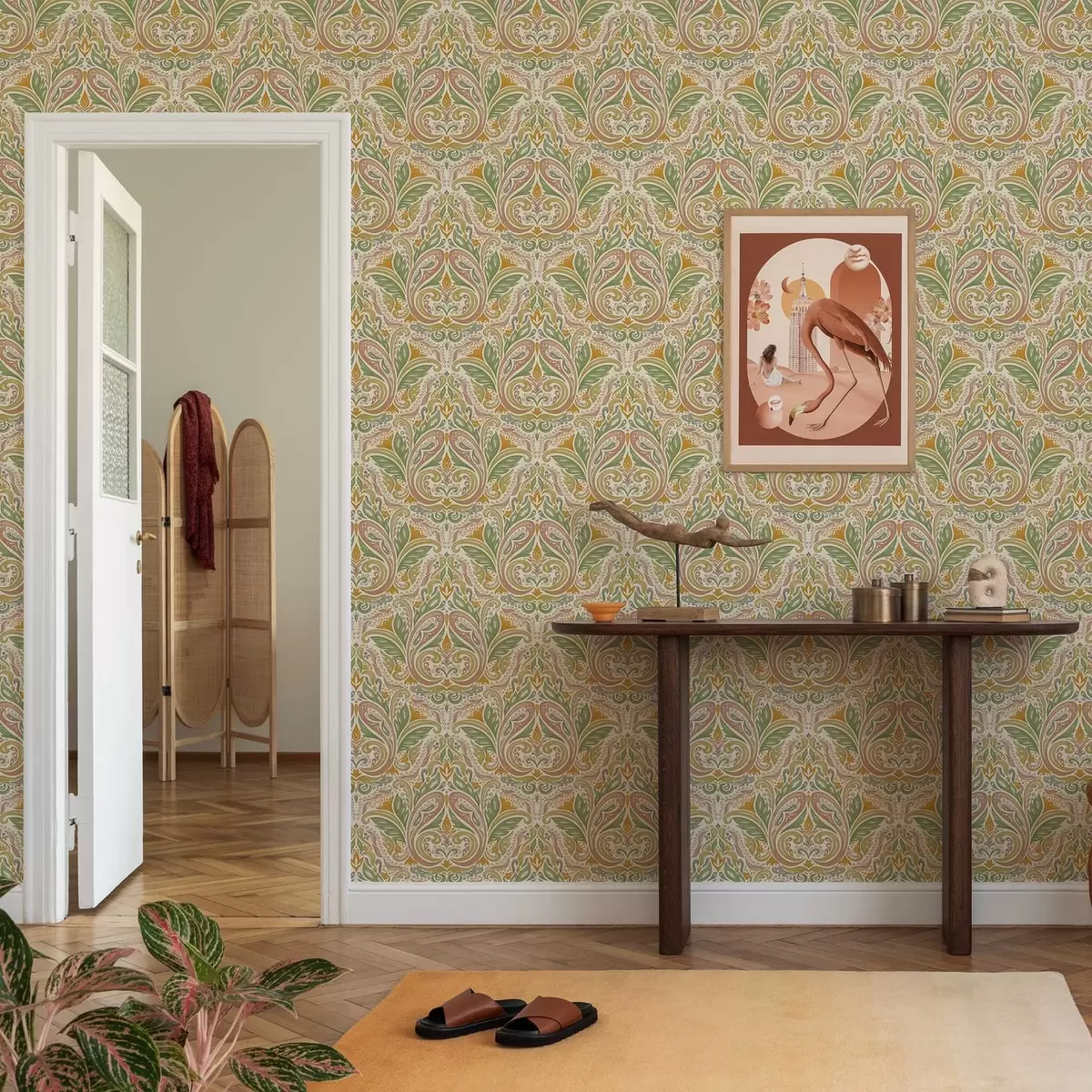 Шпалери Декоративні листяні завитки в зелених і теракотових тонах Nr. a00927v1