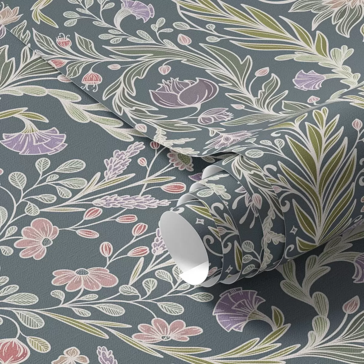 Шпалери Такий самий орнамент на прохолодному сіро-блакитному тлі Nr. a00928v1