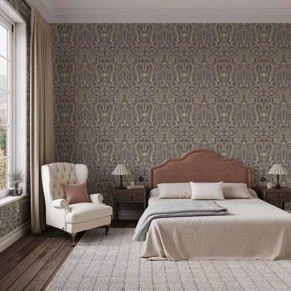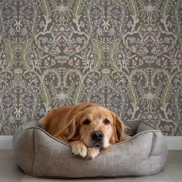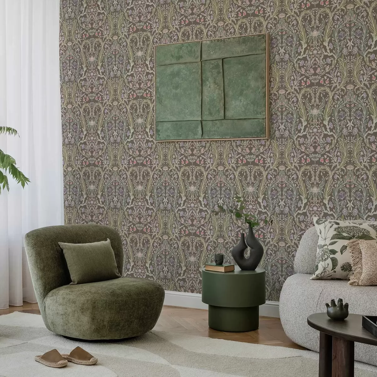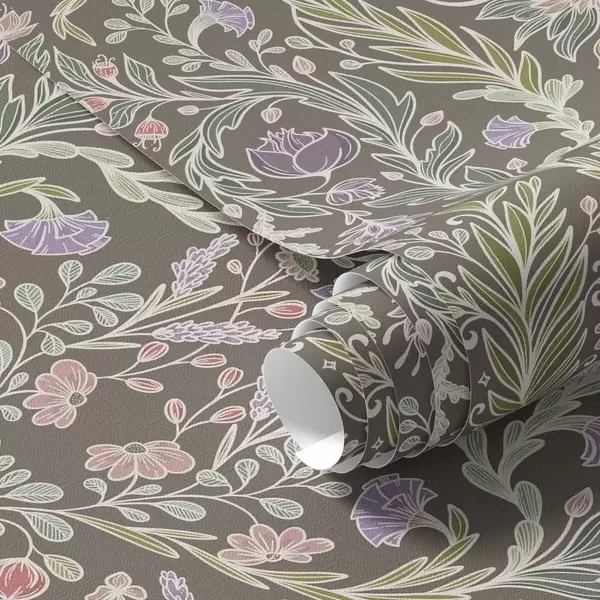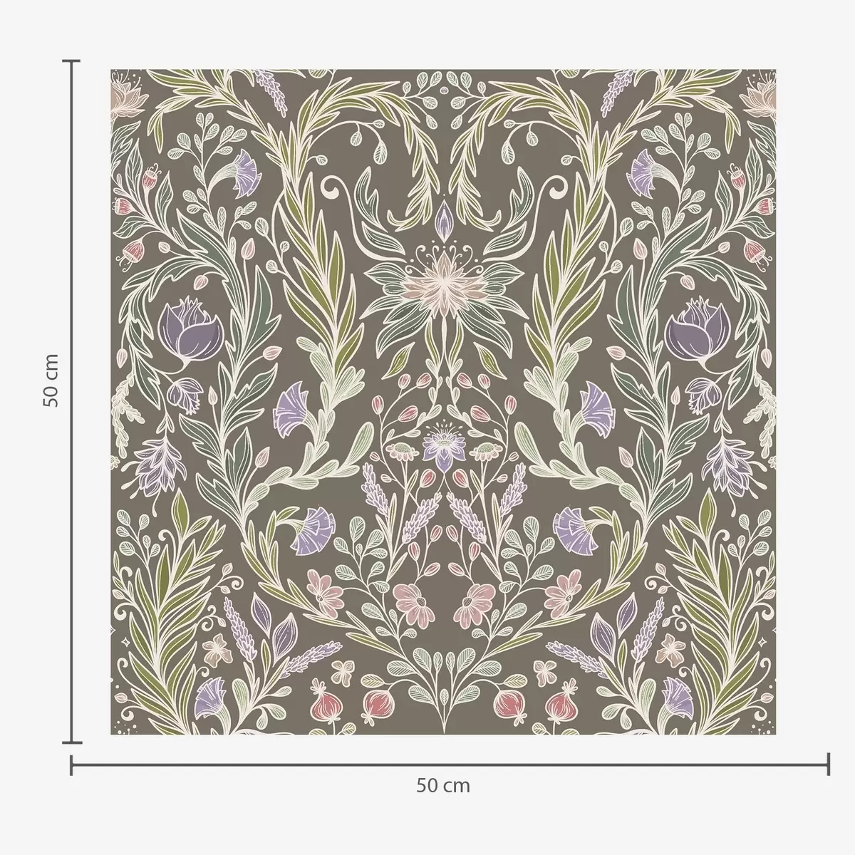 Шпалери Симетричні квіти та листя на коричнево-сірому тлі Nr. a00928v2