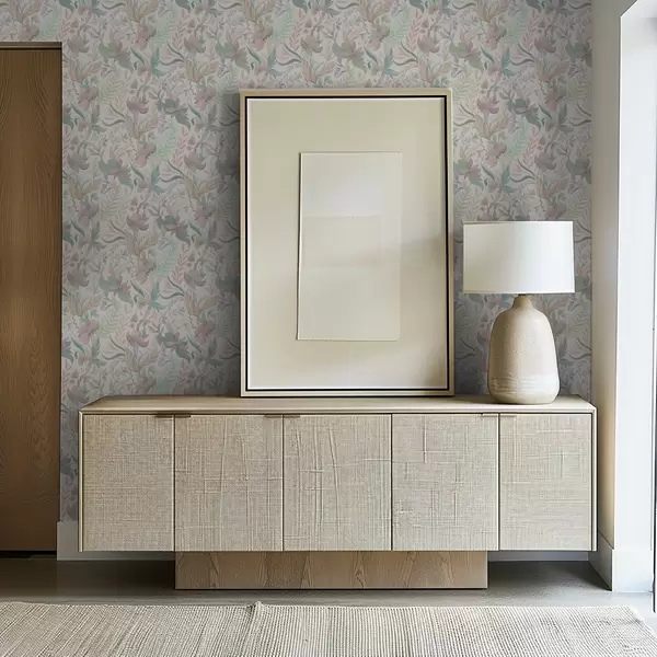 Шпалери Ніжні пастельні квіти та листя на світлому тлі Nr. a00931